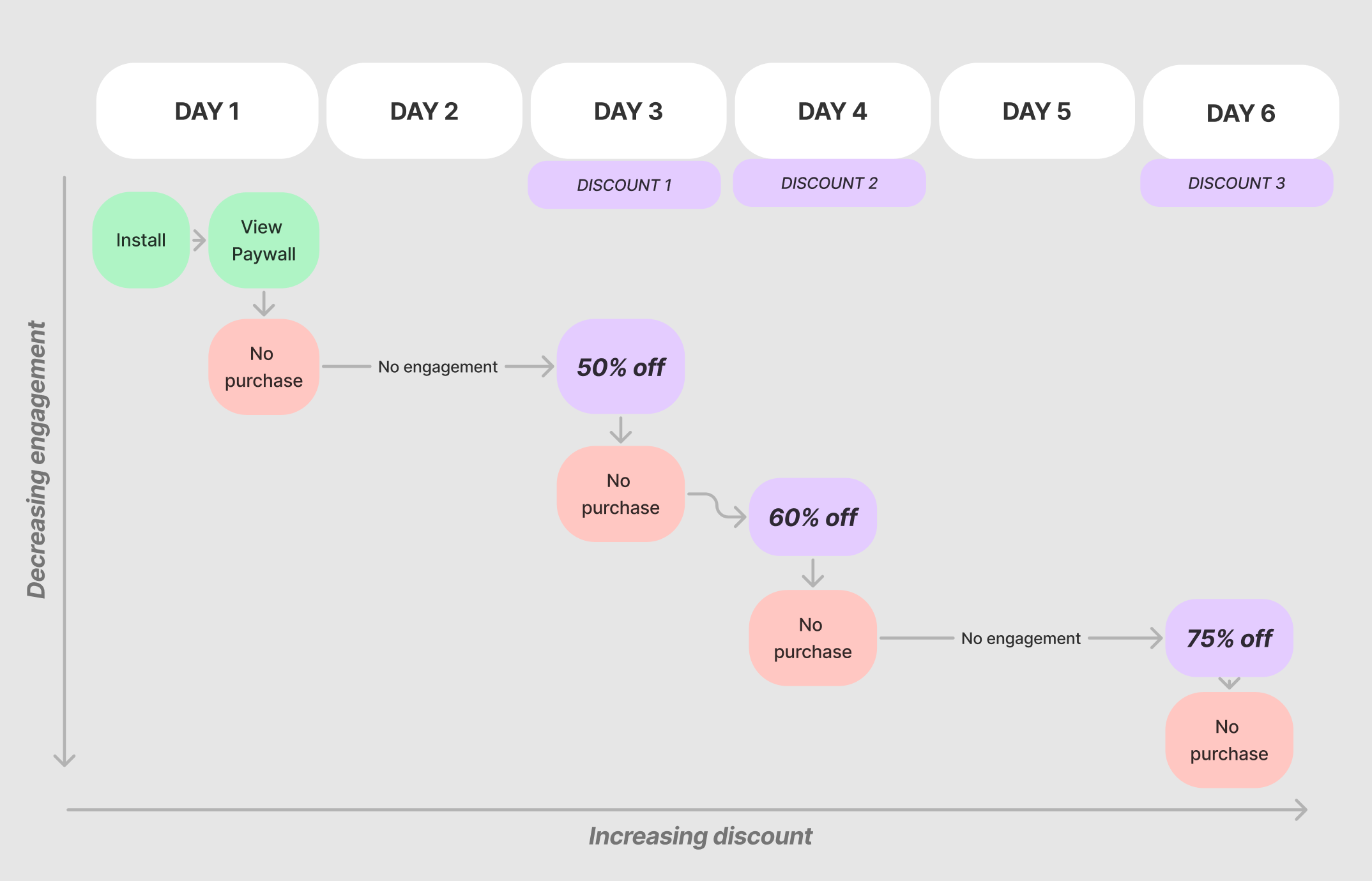 ・ユーザーエンゲージメントの分析:ユーザーエンゲージメントの変化に焦点を当て、時間の経過とともに割引率を増加させる戦略の効果について記載