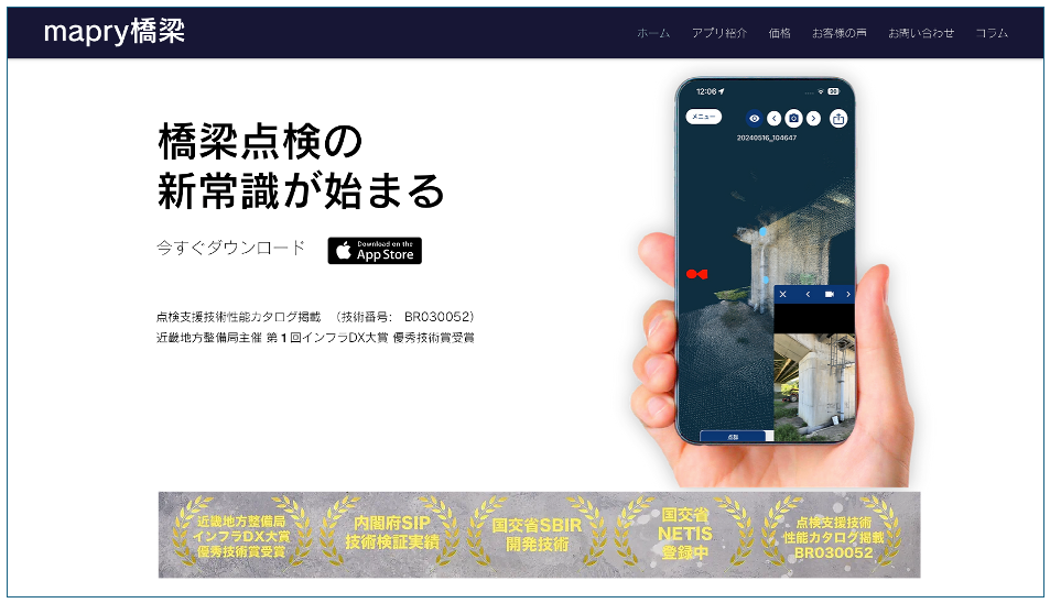 内閣府SIPやSBIRプログラムで開発・検証されている技術が正式リリースしました!自治体職員でもスマホとmapry橋梁アプリで簡単に橋梁点検が可能に。橋梁点検の新常識が始まります!