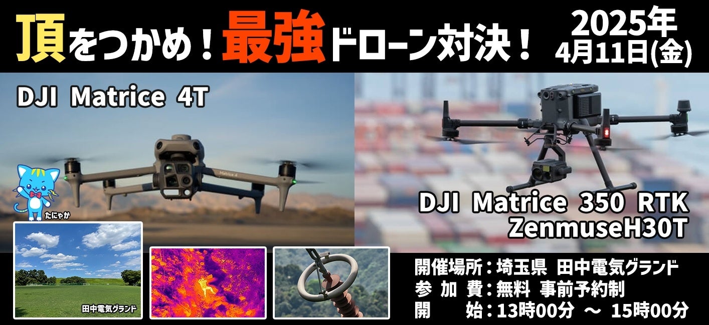 建設業、測量業、インフラ点検などで使用されている、「DJI Matrice 4T」および 「DJI Matrice 350 RTK (搭載カメラ:Zenmuse H30T)」を実演で紹介する、「DJI Matriceシリーズ デモ飛行セミナー」を開催いたします。