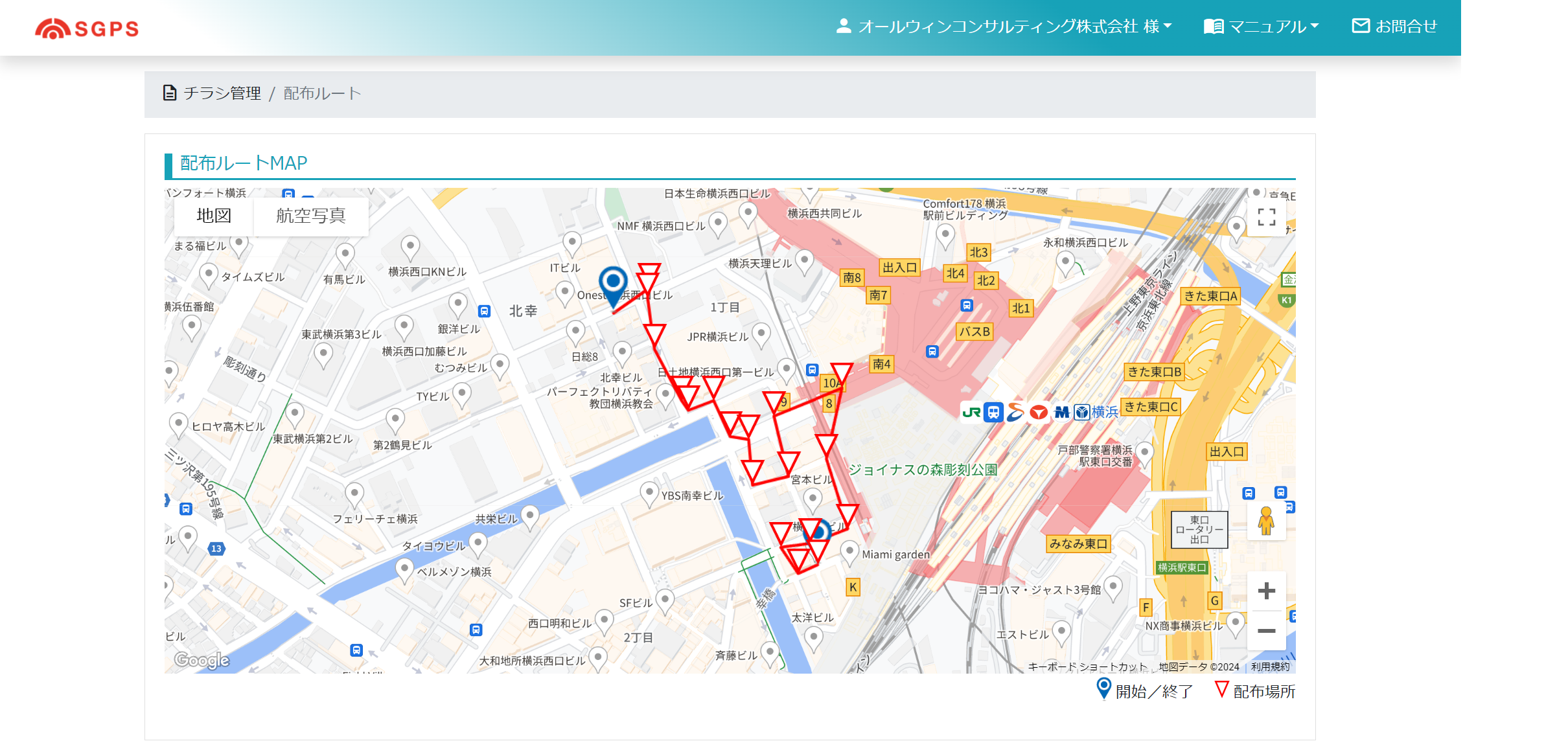 スマートフォンで配布枚数を登録するたびにGPS情報が記録され、ポスティングを行った「時間」と「場所」だけでなく、「配布ルートの確認」が容易に行える機能を追加しました。