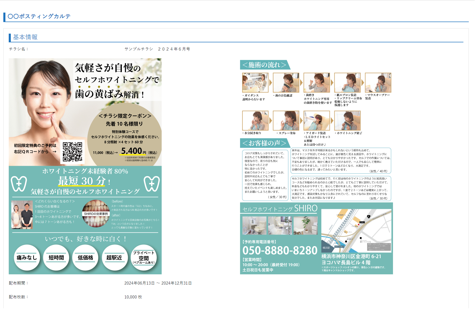 「〇〇ポスティングカルテ」といった具合に、御社名などの入ったオリジナルタイトルにして頂くことによって、お客様の興味をグッと惹きつけられるでしょう。