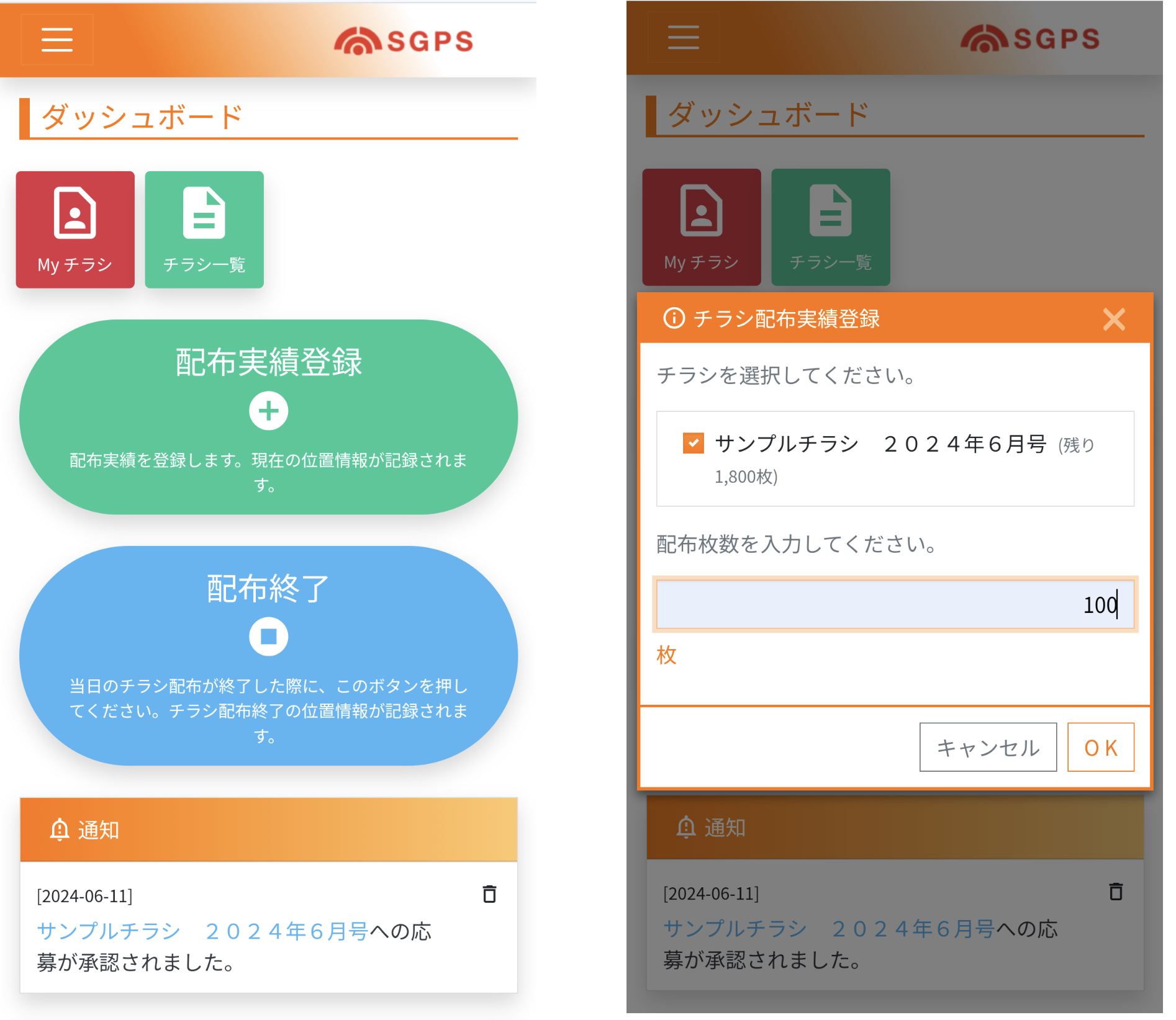 単なるGPS情報(移動の軌跡)ではなく、配布者が「配布枚数を登録した際に記録される」ので、心理的にも虚偽報告の抑制につながります。