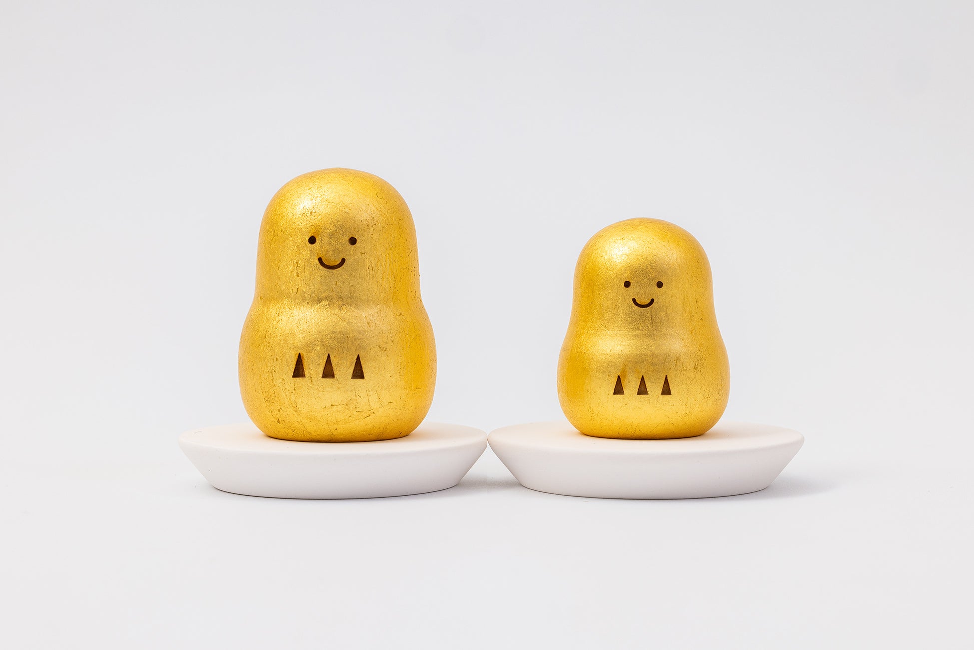 発売から約3年、沢山のお客様に愛されてきた「願い小だるま」の、超限定版が新年に登場しました。様々な新作、限定版が生まれて来た願い小だるまですが、純金をあしらったシリーズは初。一点ごとに手仕事のため、生産数もごく僅かです。