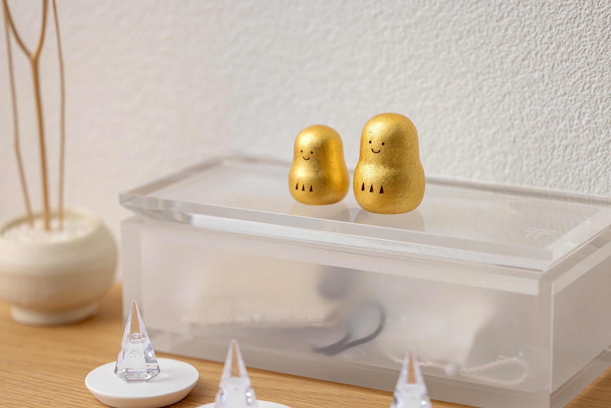 ブランドの立ちあげ以来、様々な新しい製品づくりに挑戦してきた「かみさまとおうち」。実用的なものから、純金箔の願い小だるまのようなちょっと変わったものまで。すべては、「神棚」という古来から続く伝統に、新しい層にも再注目してもらい、文化がずっと続いていくように…。すべての製品には、そんな思いが込められています。