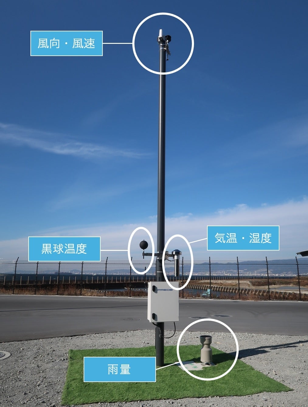 特に、夏期に開催される万博では熱中症が危惧されています。会場に観測機器を設置し、WBGT値(熱中症対策)を含む観測データを元に精度の高い熱中症の危険度を予測しています。会場で必要とされる気象・防災情報は、担当者が直接確認することができるようWebシステムの提供も行います。