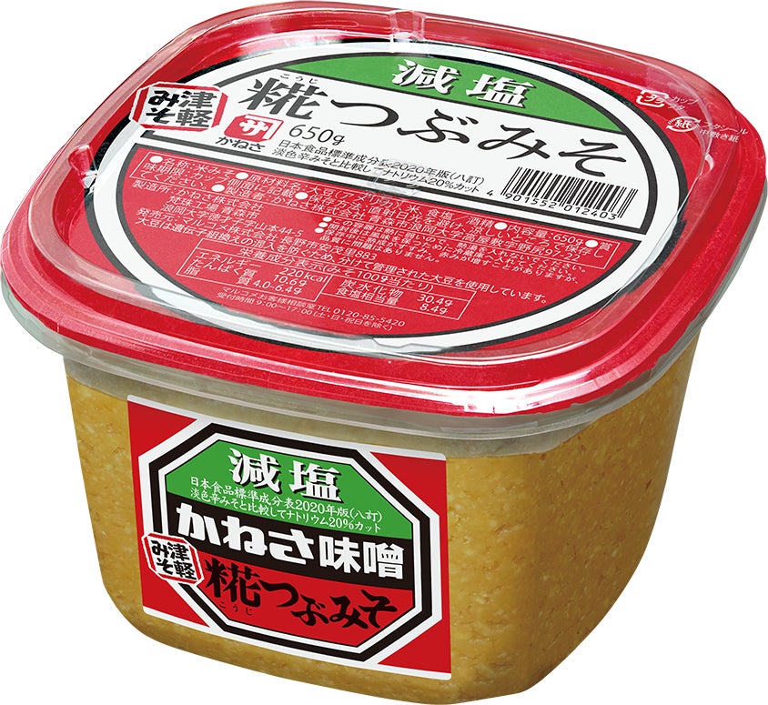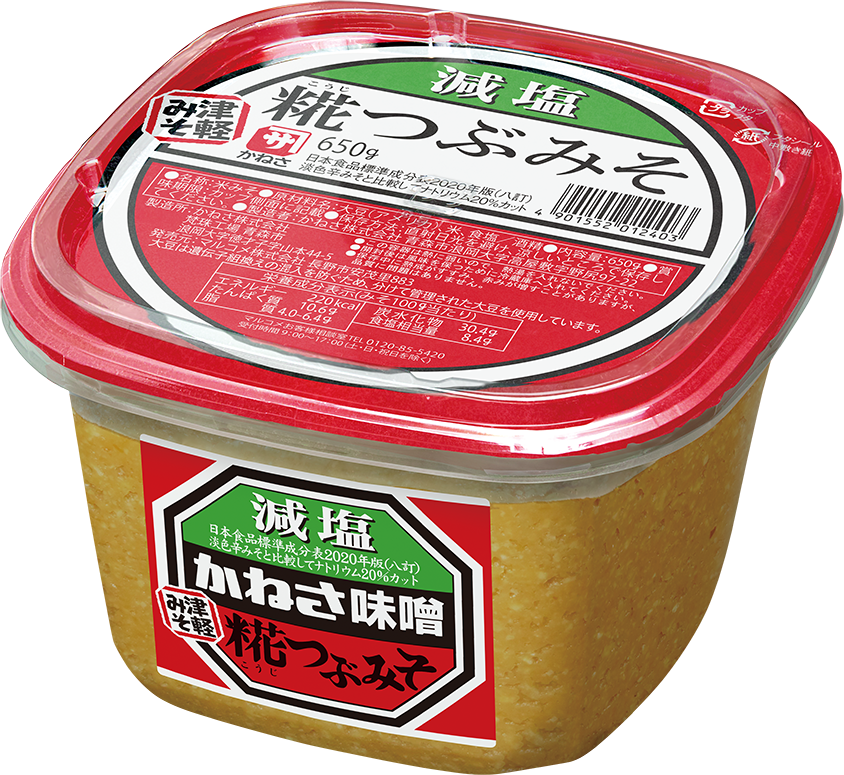 東北地方が誇る、「かねさ 糀つぶみそ」の減塩タイプです。