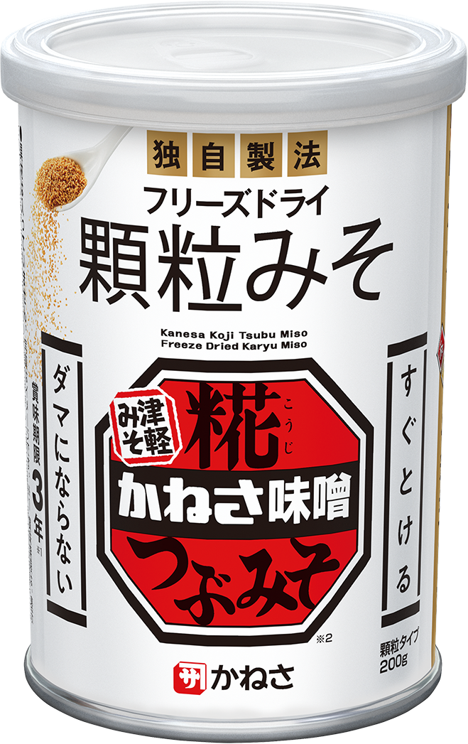 伝統の津軽みそを生みそ本来の風味で味わえる独自製法のフリーズドライ加工で顆粒みそにしました。