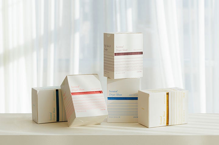 ラヴアはヴィーガン植物性原料とフランスの調香師が丁寧にブレンドしたニッチな香りから誕生したトレンディな生活用品が揃う韓国ライフスタイルブランドです。 代表カテゴリーとしては、7日以上続く上品な残り香と優れた柔軟性の柔軟剤、ドライシートの△ランドリーラインと日常をおしゃれな香りで満たすファブリックパフューム、ワックスタブレット、フレグランスタグ製品が属する△ホームフレグランスラインなどがあります。 特に乾燥機用柔軟剤シートであるセンテッドドライシートは高級ビスコース生地を用いて湿式工法で作られ、高温でもべたつかず吸収されることに加えて、深い香りと生地の柔らかい肌触りが長く維持されます。センテッドドライシートは短期間で多数の肯定的なレビューを得て、アマゾンジャパンランキング1位になりました。