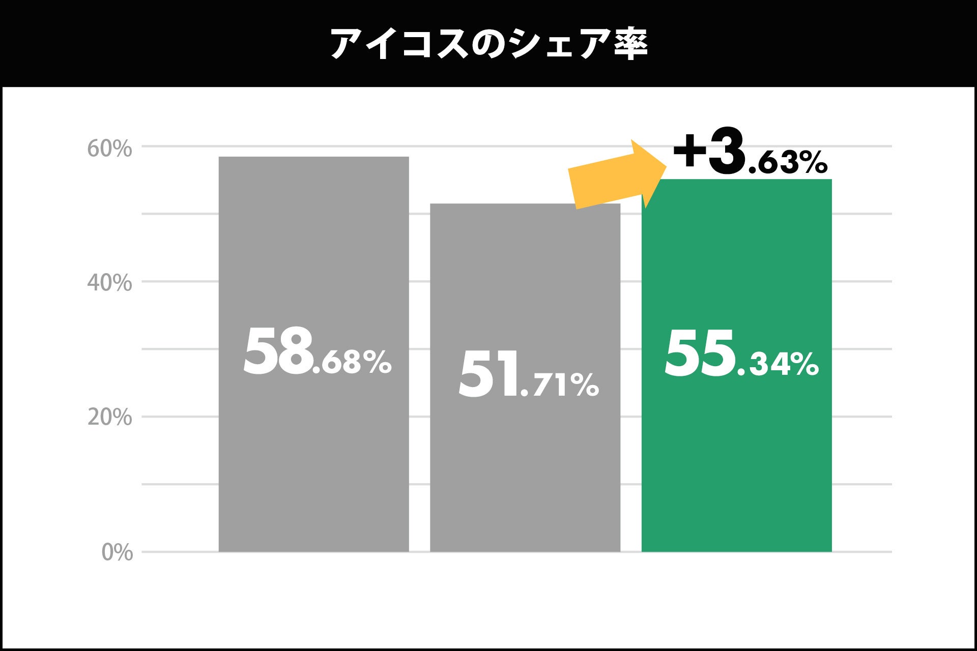 ⬛︎アイコスのシェア率は50%以上。昨年より3%UP!