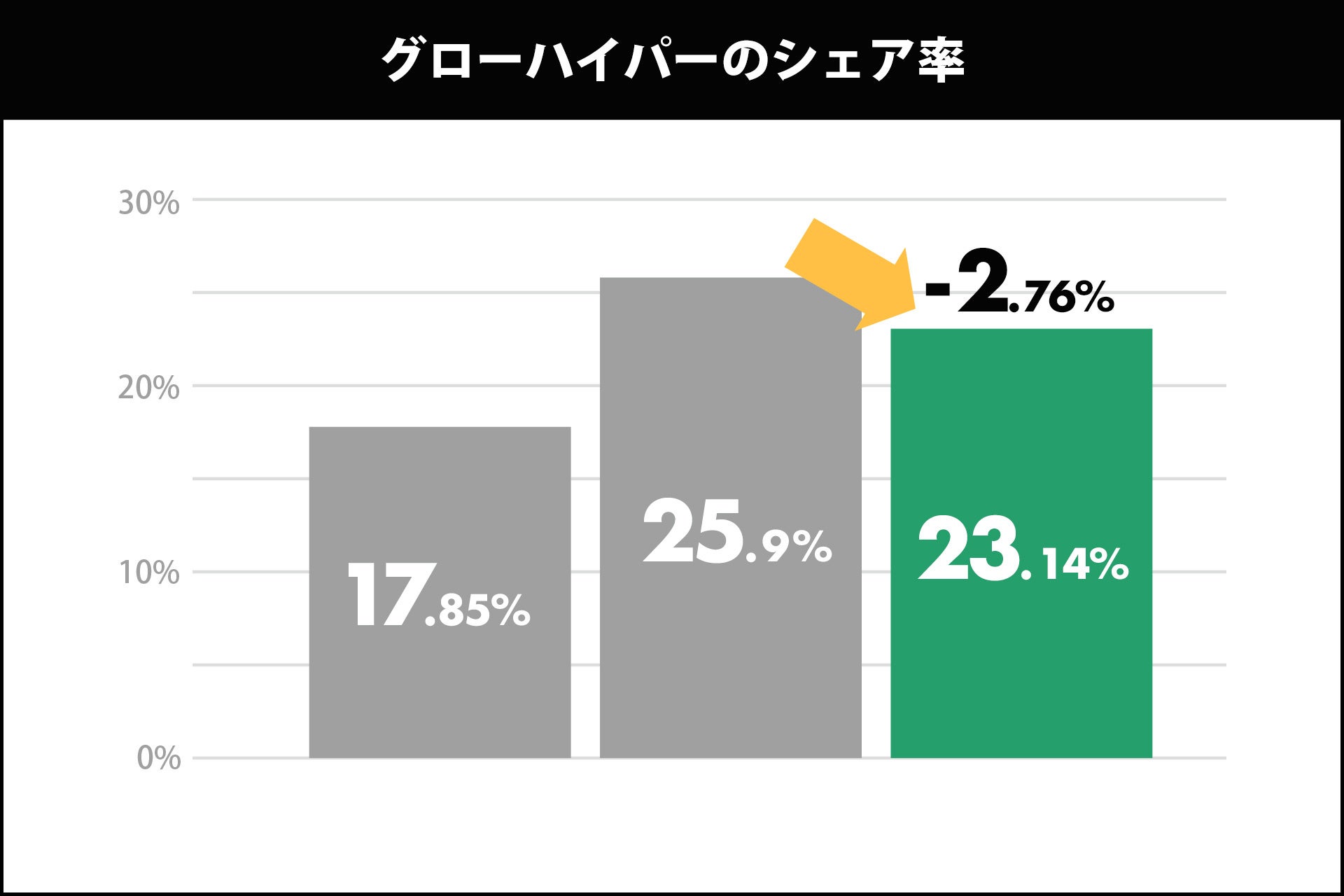 ⬛︎グローハイパーのシェア率は微減。昨年から約3%減