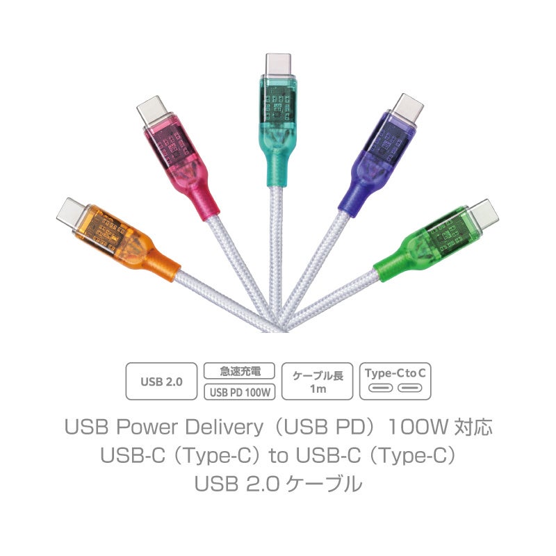 平成の世に現れ一世を風靡したスケルトンデザイン。令和の世にスマートフォンやタブレットなどのガジェットの充電に欠かせないUSB-Cケーブルとしてよみがえりました。カラーは「ブルーベリー」「グレープ」「タンジェリン」「ライム」「ラズベリー」のポップな5色をご用意。