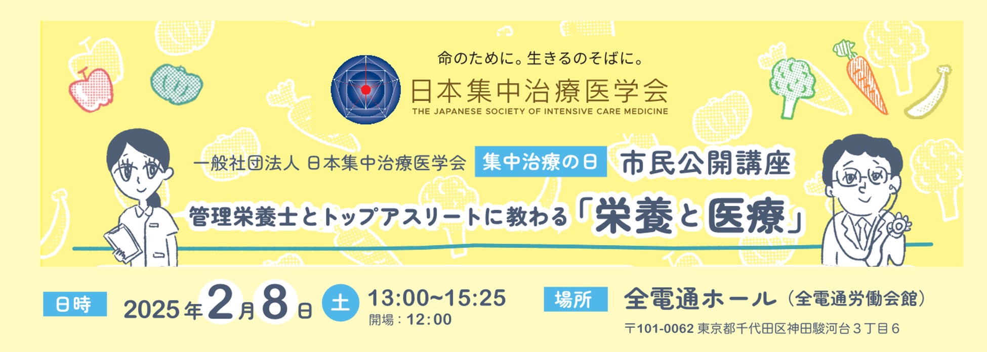 日本集中治療医学会「集中治療の日」市民公開講座2/8(土)開催 ~管理栄養士とトップアスリートに教わる「栄養と医療」~