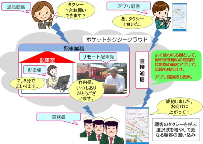 名古屋市の明和無線グループ 配車室を完全廃止にクラウド型タクシー配車システム「ポケットタクシー2地方版を導入し、2ヶ月で配車代行サービス「タクリーチ」に完全移行