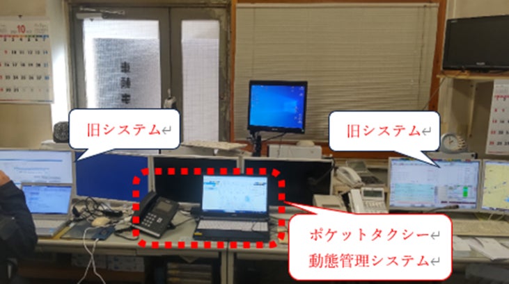 ※以前はPC2台、ディスプレイ4台だったが、ノートブックPC1台。1分に4回の配車効率。こぼれる顧客は代行サービスがバックアップ。