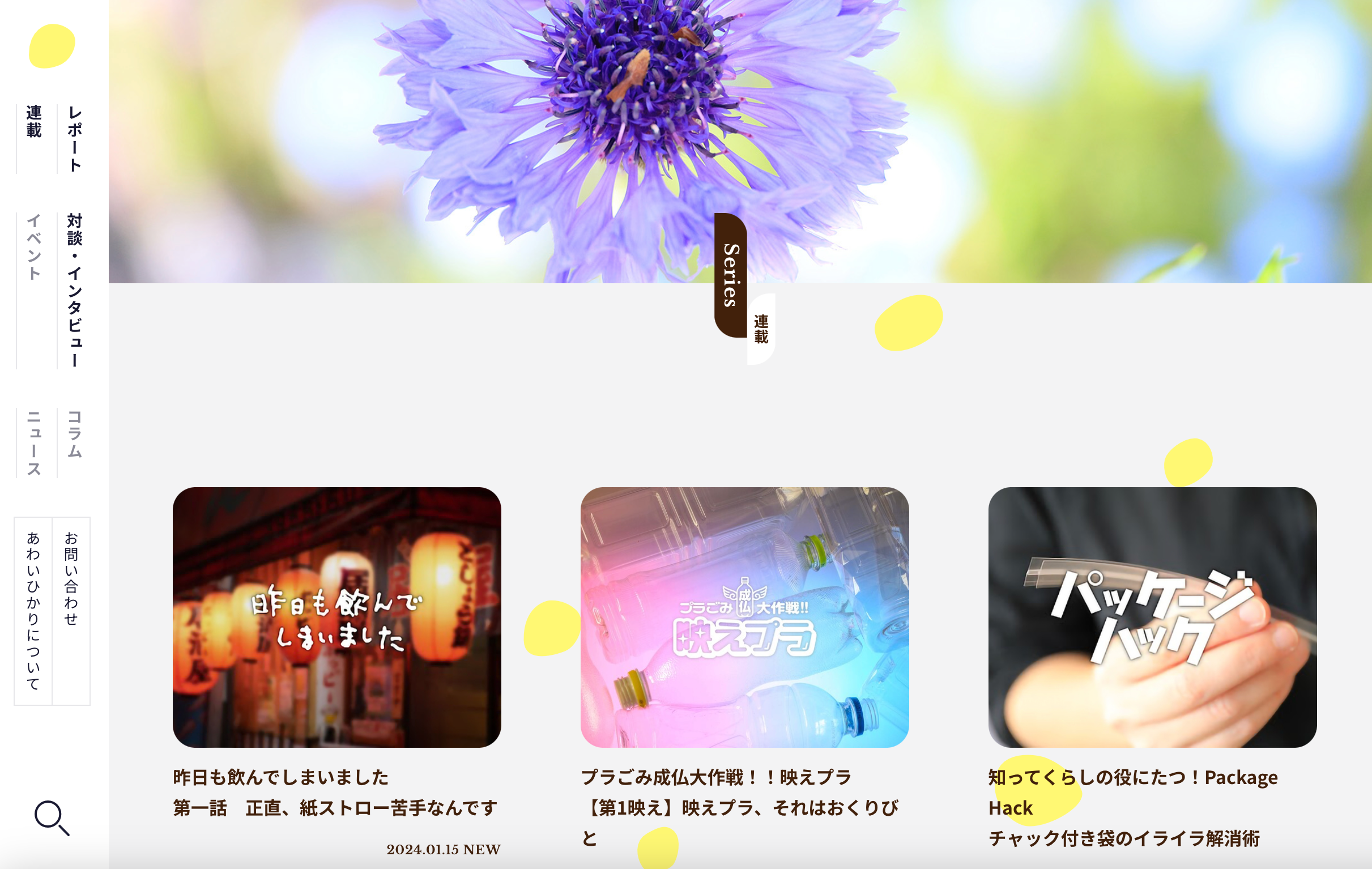 環境に配慮されたパッケージの採用事例や環境負荷低減に取り組んでいる企業や人を紹介する記事や対談などをはじめ地球にいいことを発信しています。