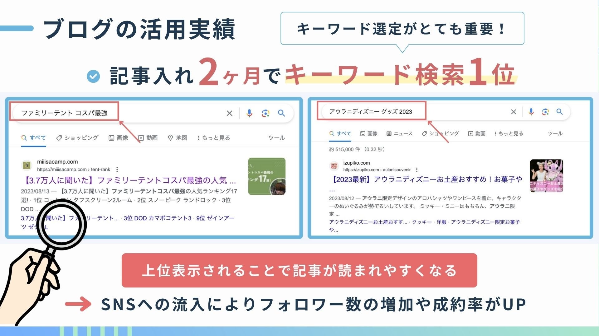 あなたの大切な商品、サービスをSNSと記事の力を活用して世の中に広めていきます。