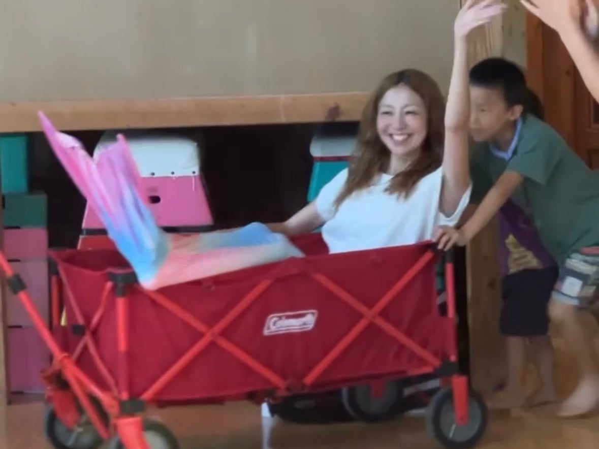 キャリーワゴンに乗って人魚の姿で登場したのは、同法人で活動している3児の母。子供たちと一緒に楽しむことが得意な講師が、まずは子供たちとの距離を縮めながら海に親しむ会がスタート。