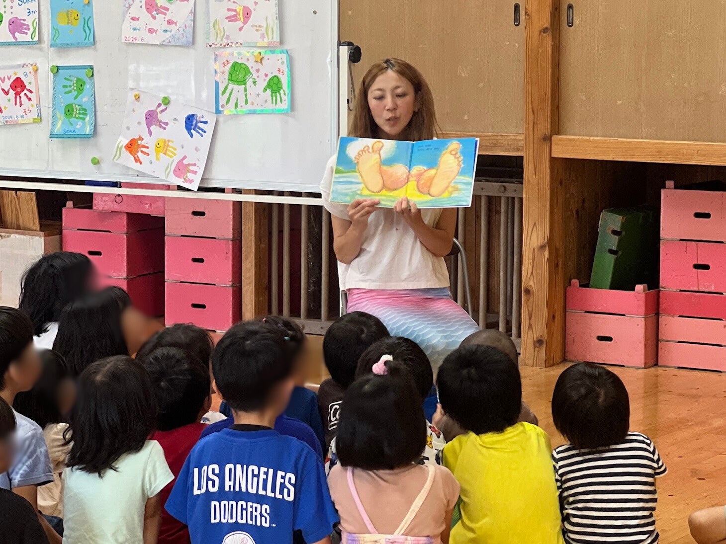 保育園で行った海の環境授業では、絵本の読み聞かせや、ゲーム、手形アートなど、楽しむこことで海への親しみを深めながら、海のごみについても未就学児にも分かりやすく伝えました。