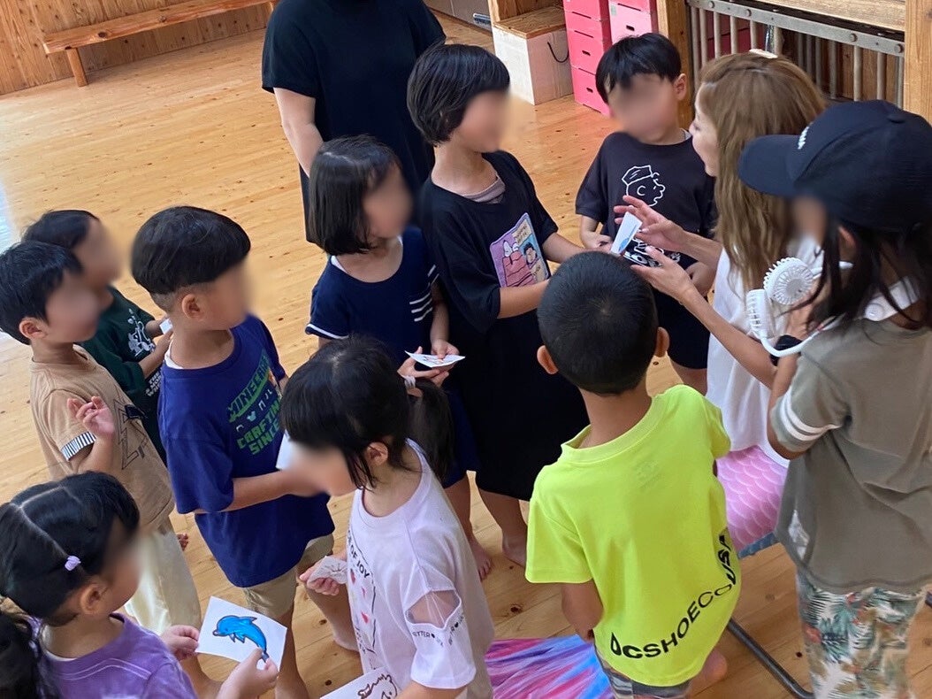 海の生き物宝探しから始まり、子供たちは大喜び。絵本作家でもある講師が自作した絵本の読み聞かせではみんなが夢中で聞きながら、「あるあるー!」と大きな声で反応もありました。