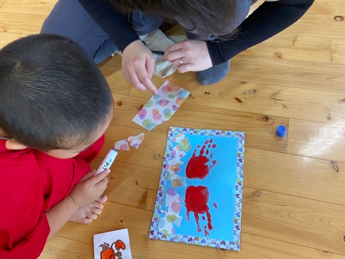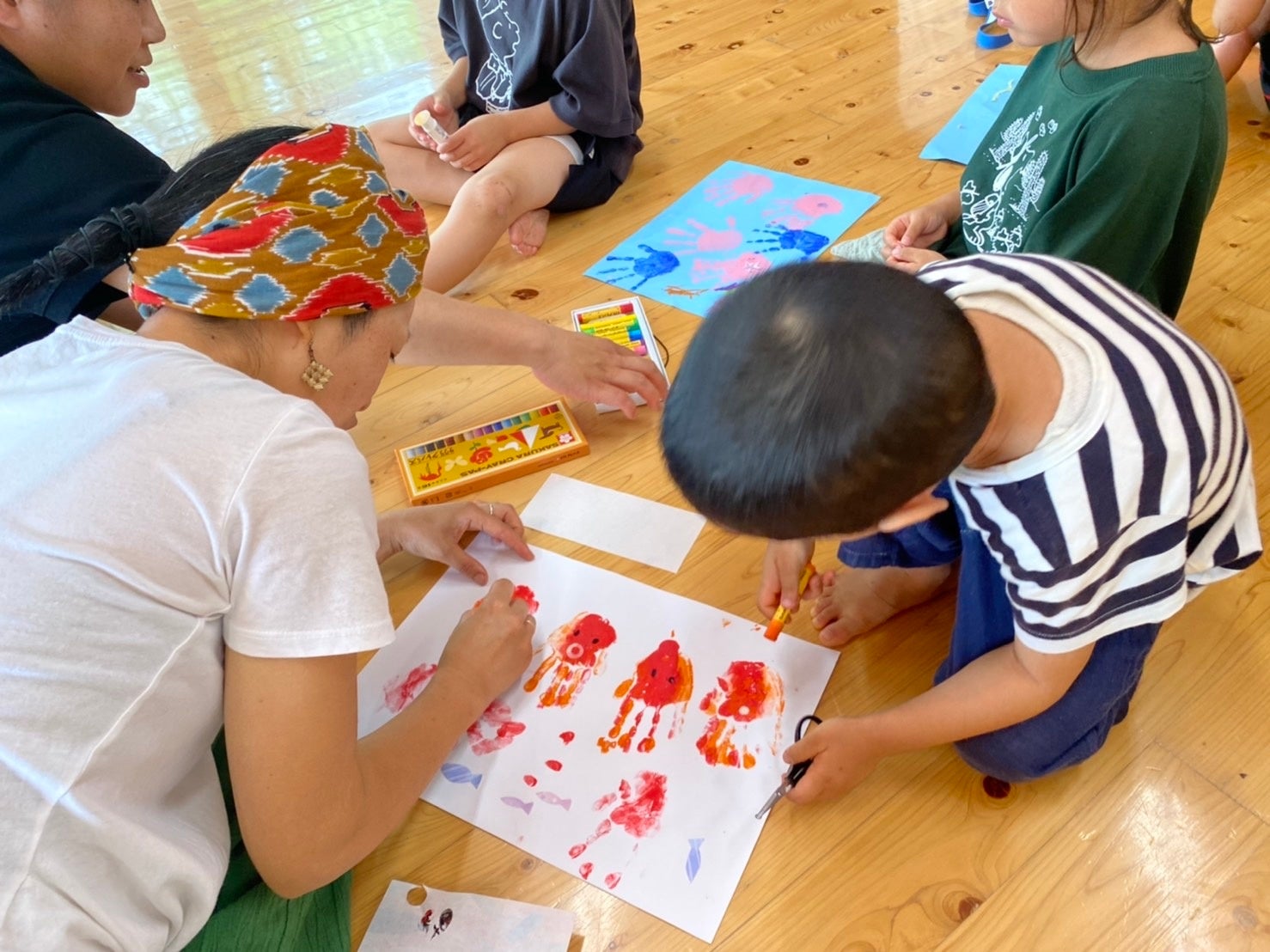海の生き物手形アートでは、子供たちが親子で自由にのびのびアートを楽しみ、世界に一つだけの手形アートを完成。子供だけでなく「親子で一緒に楽しむ」という要素も、母である私たちにとって、この時期にしかできない大事な体験をしてもらうことができました。
