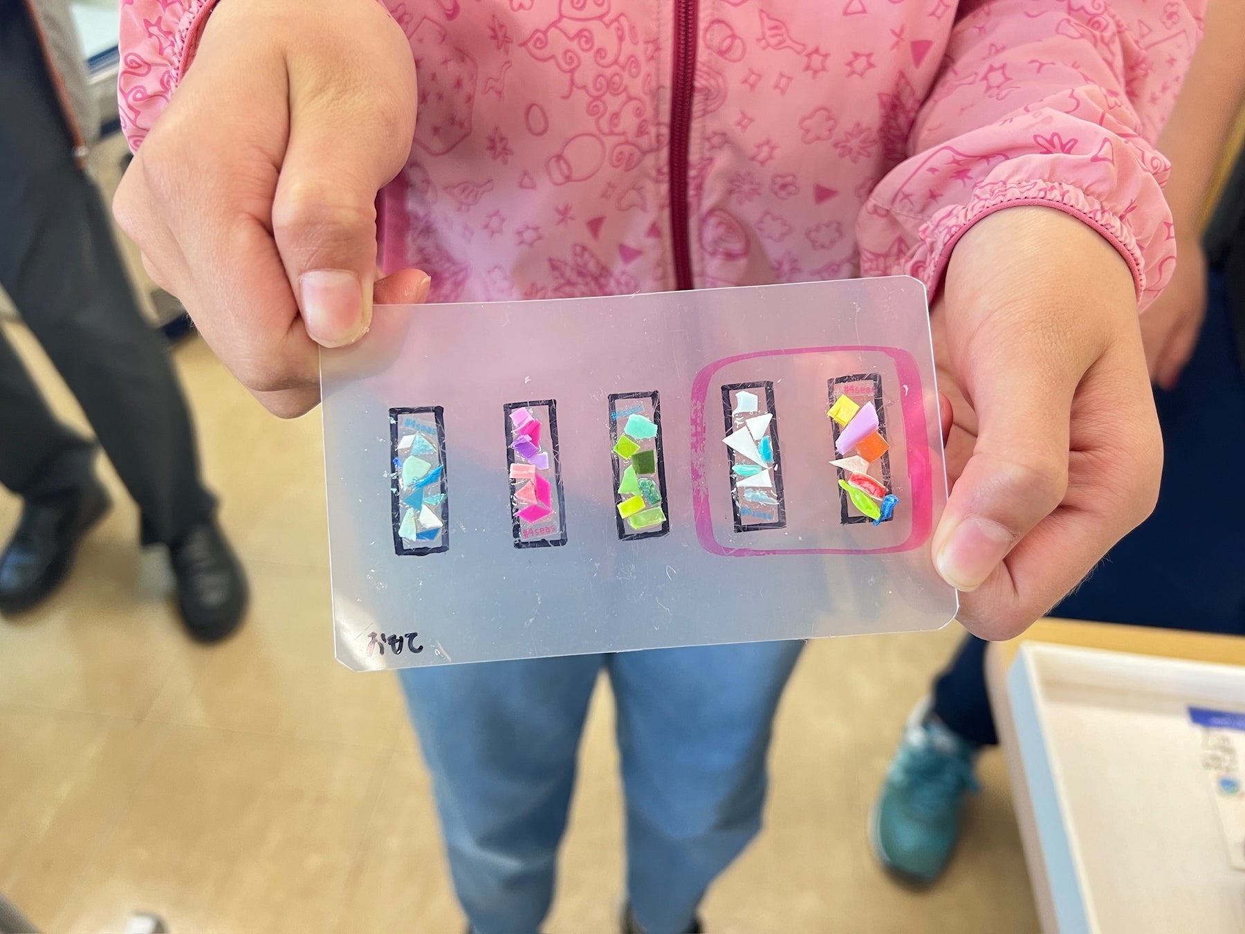 講師がおもしろい!と思う海ごみを持参し、海によく落ちている数種類のごみを手に取って観察し、質問やクイズ形式でマイクロプラスチックの成り立ちや海ごみについて学びました。、
