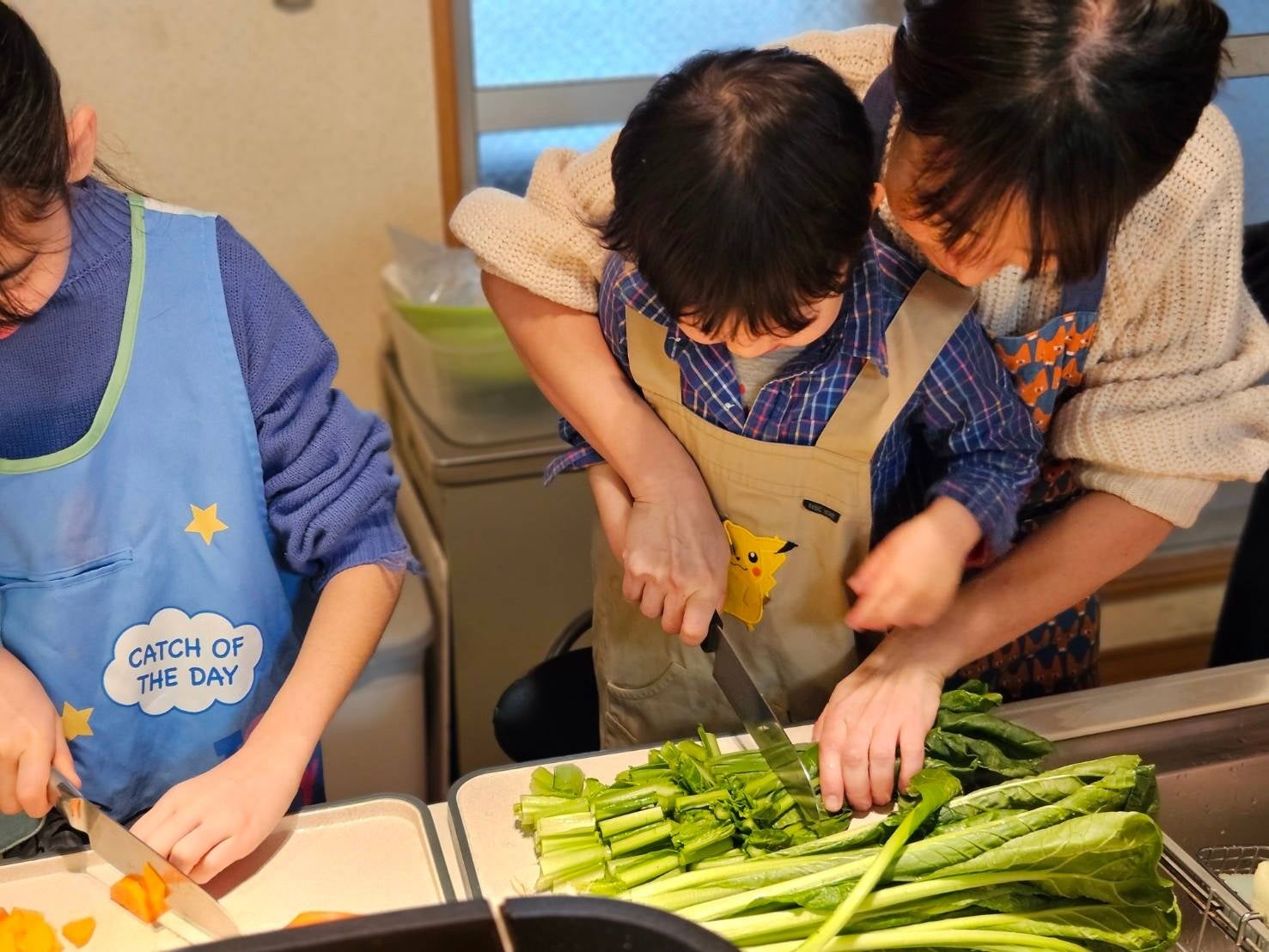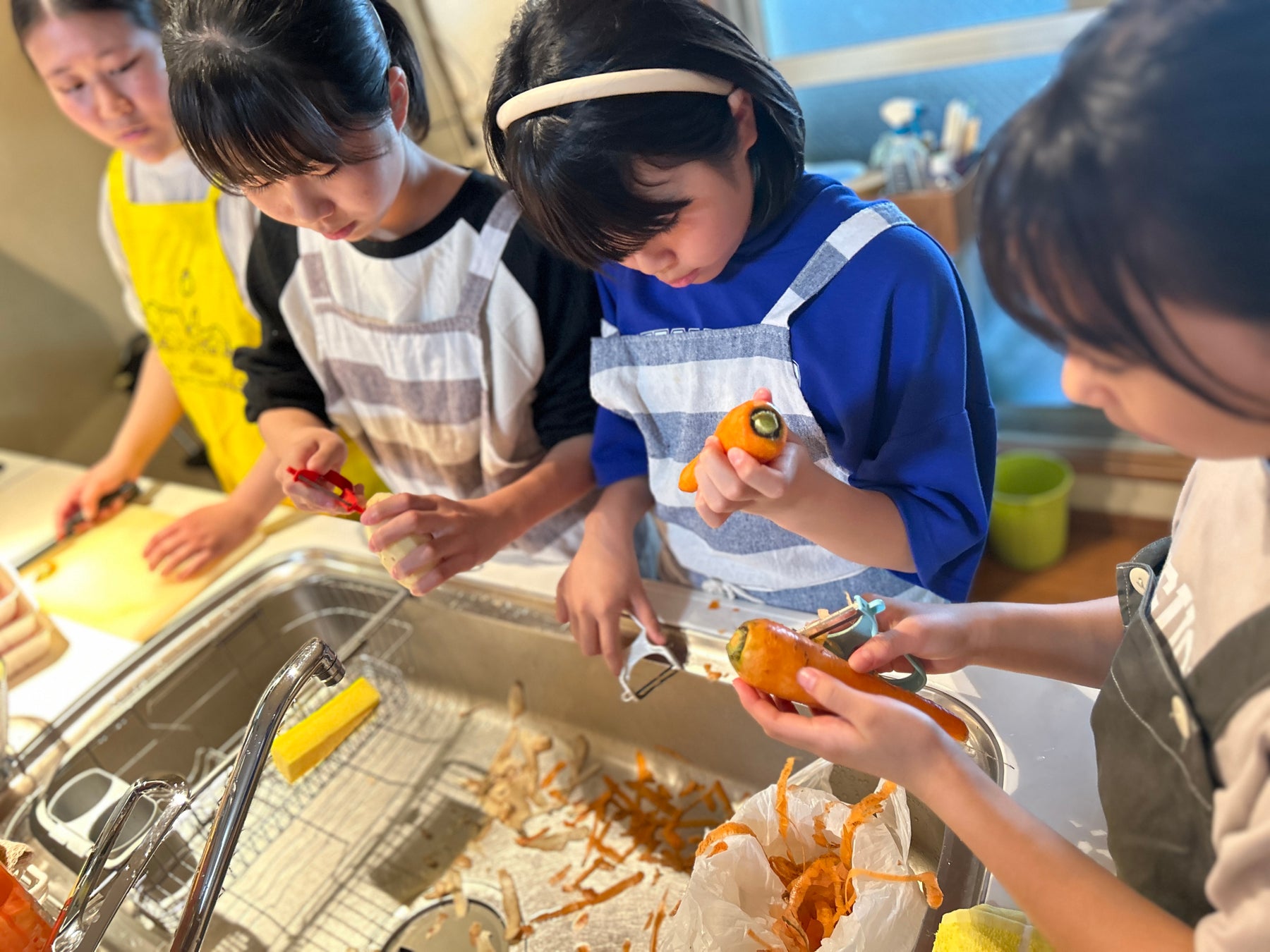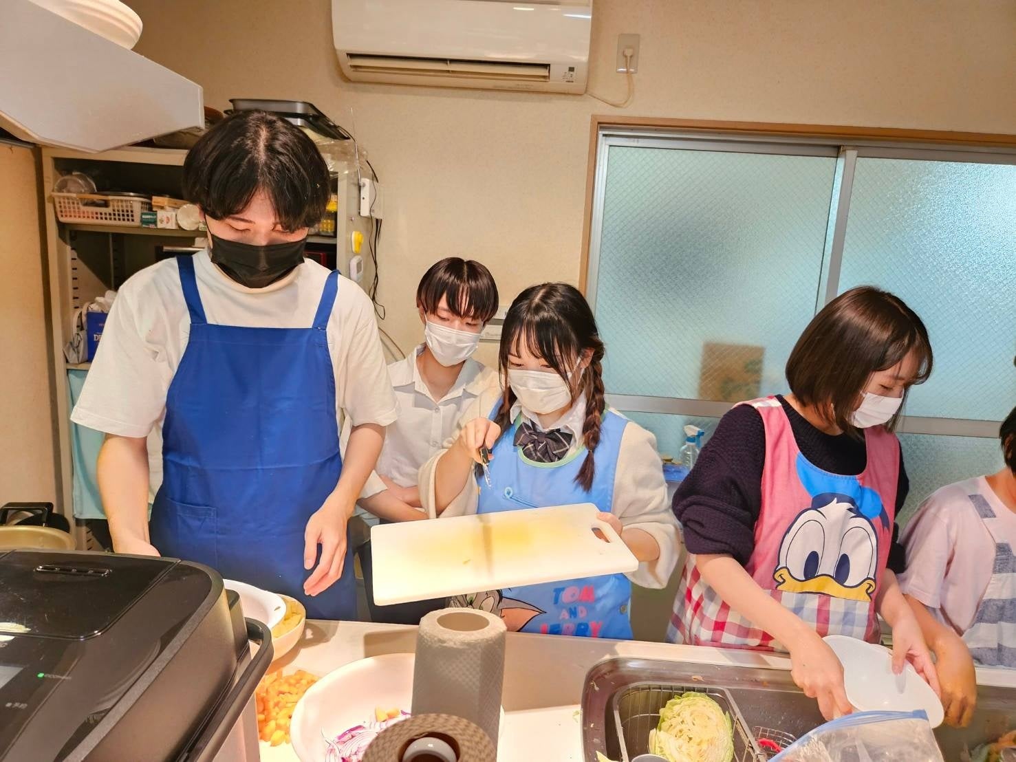 昨年11月15日、都立江戸川高校で2年生向けに「総合的な探求の授業」という出前授業で、及川理事長が「資源循環社会づくり、365日子ども食堂」をテーマに登壇した際に、興味を持った2名の女子高生が、早速次の日に関東一高の友人と共に来訪し、週1回無料塾の講師ボランティアとして参加。講師以外にも夕ごはんの調理ボランティアとしても活動する様になる。