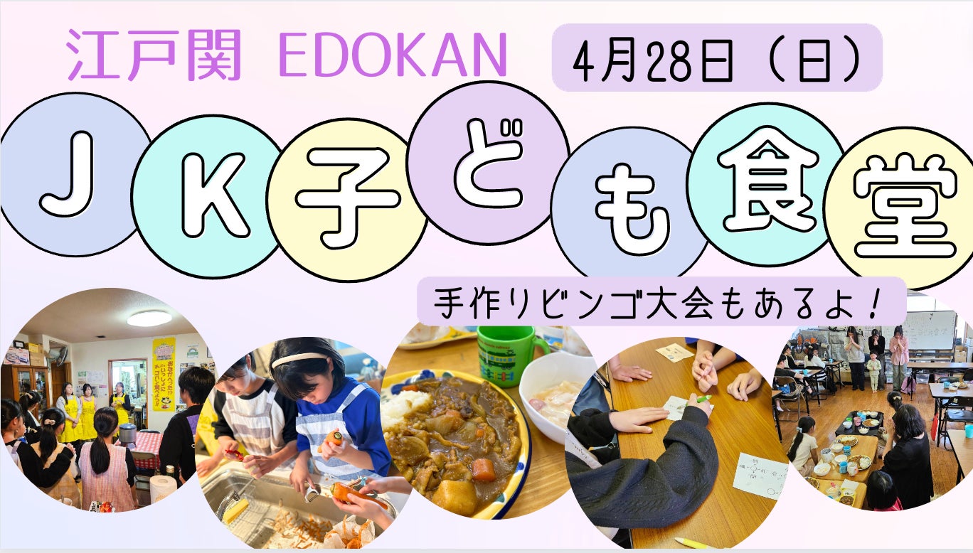 『江戸関JK子ども食堂』を当法人の子ども食堂『NUKUNUKU』を会場として4月14日に行い、28日にも実施いたします。