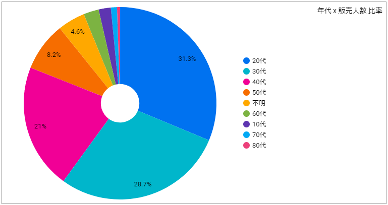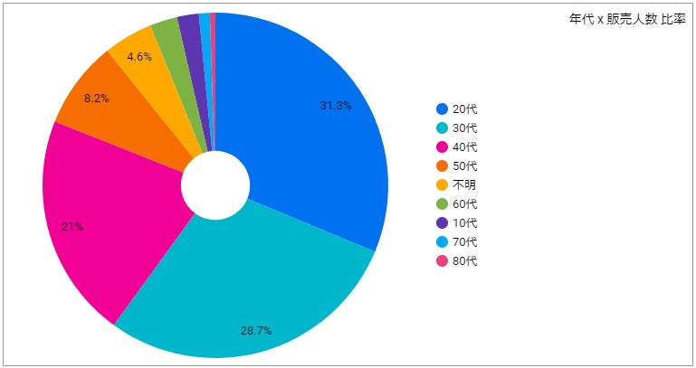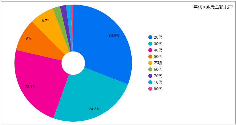 年代比率では20代が最も多い結果でした。商品の単価が高いこともあり、細分化した集計では20代後半が最も多く、30代前後半、40代前後半のあとに20代前半が続く結果となっていました。