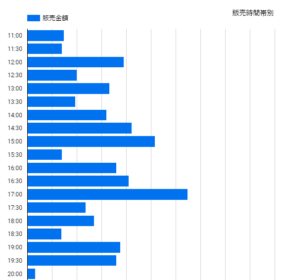 時間帯別は17時台がもっと多い結果でした。