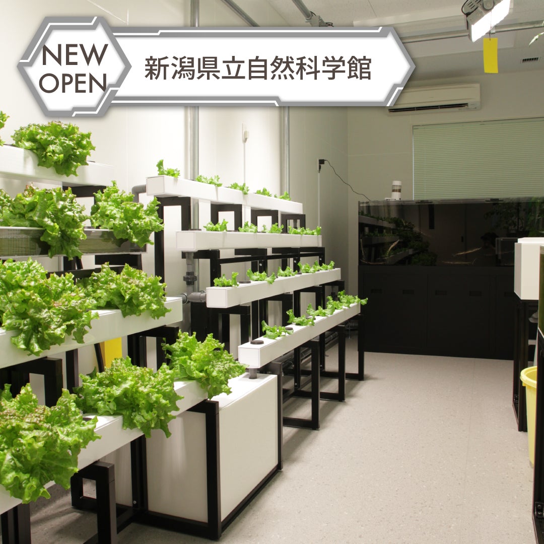 2024年8月1日より新潟県立自然科学館(新潟市中央区女池南3-1-1)にて、当社が設計・施行したアクアポニックス施設と屋内型水耕栽培システムの観覧が開始となります。