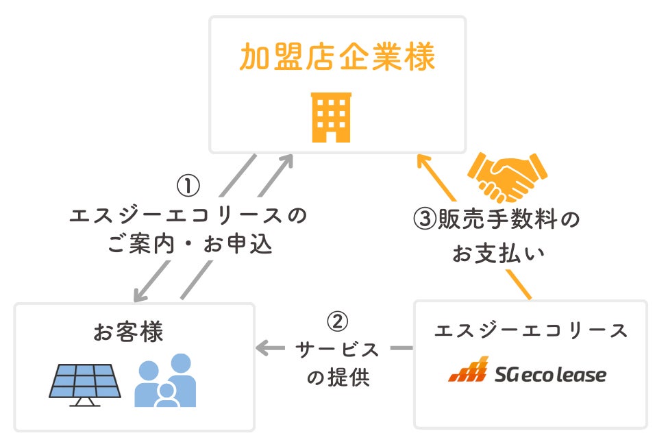 1. 加盟店の皆様は、新築住宅やリフォームを検討しているお客様に、融資枠とは別枠で初期費用0円の太陽光発電サービス「エスジーエコリース」をご案内いただけます。