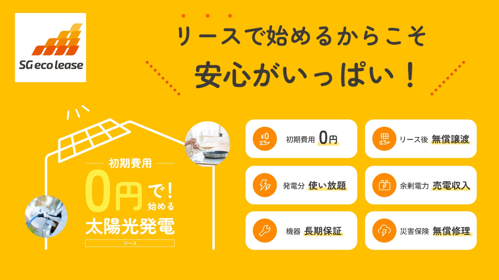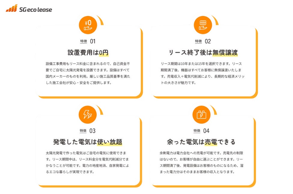 エスジーエコリースは初期費用0円!リースだからこそお客様との関係性を長期にわたって保つことができます。