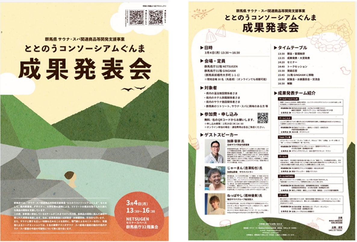 名称:群馬県 サウナ・スパ関連商品等開発事業“ととのうコンソーシアムぐんま” 成果発表会