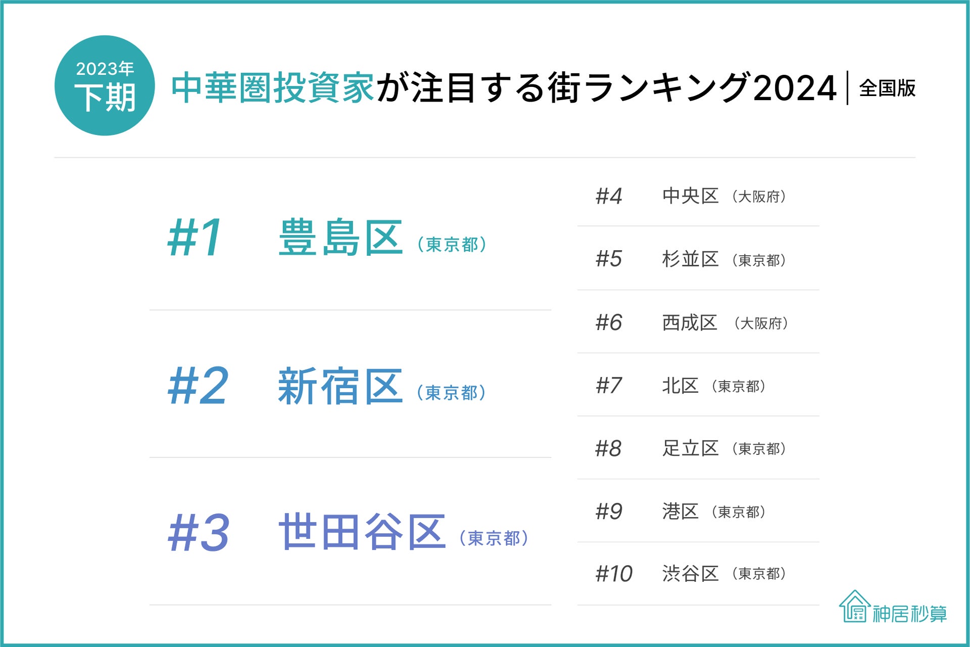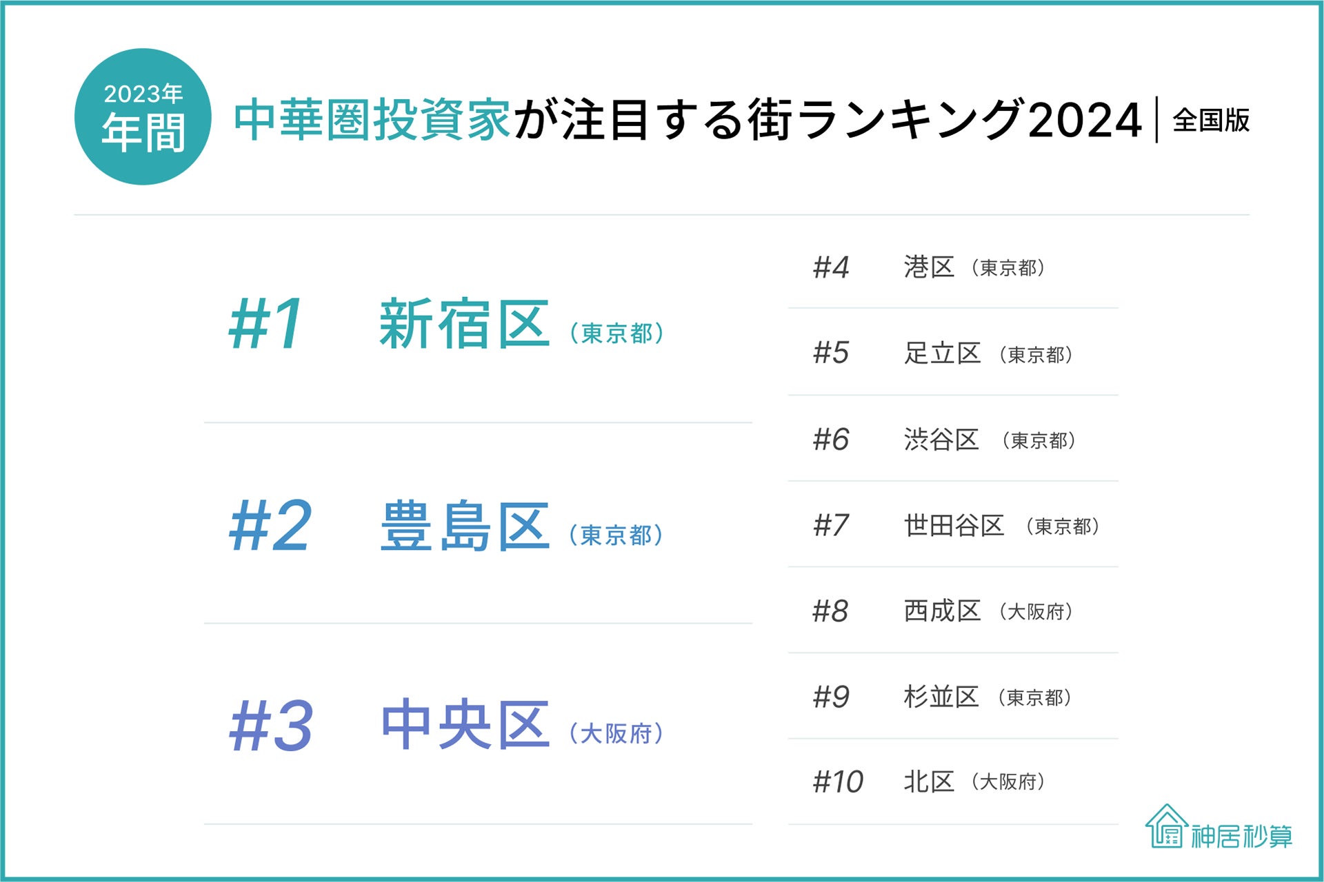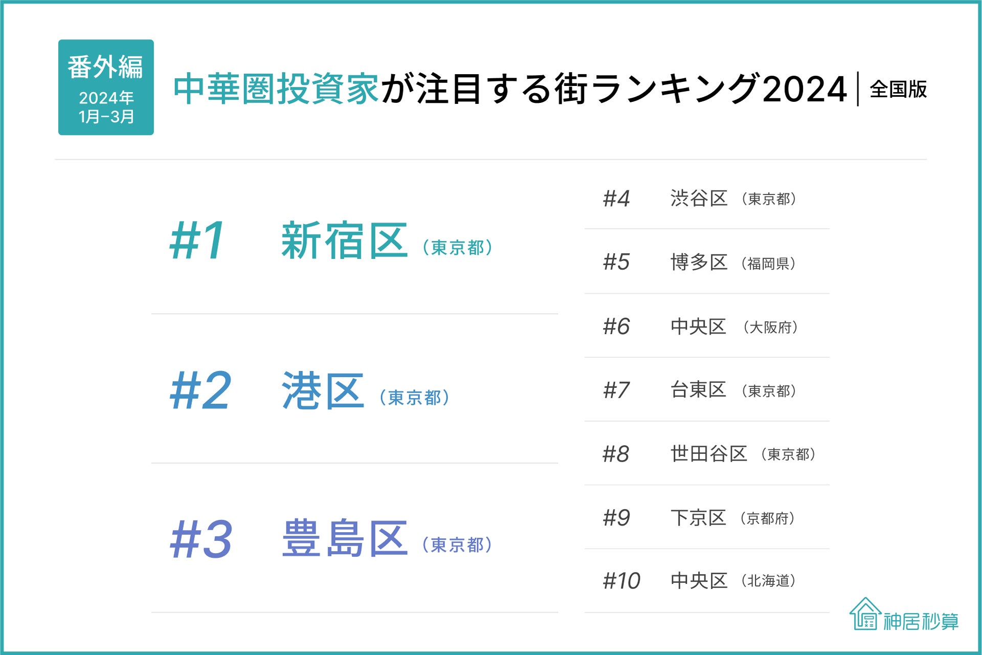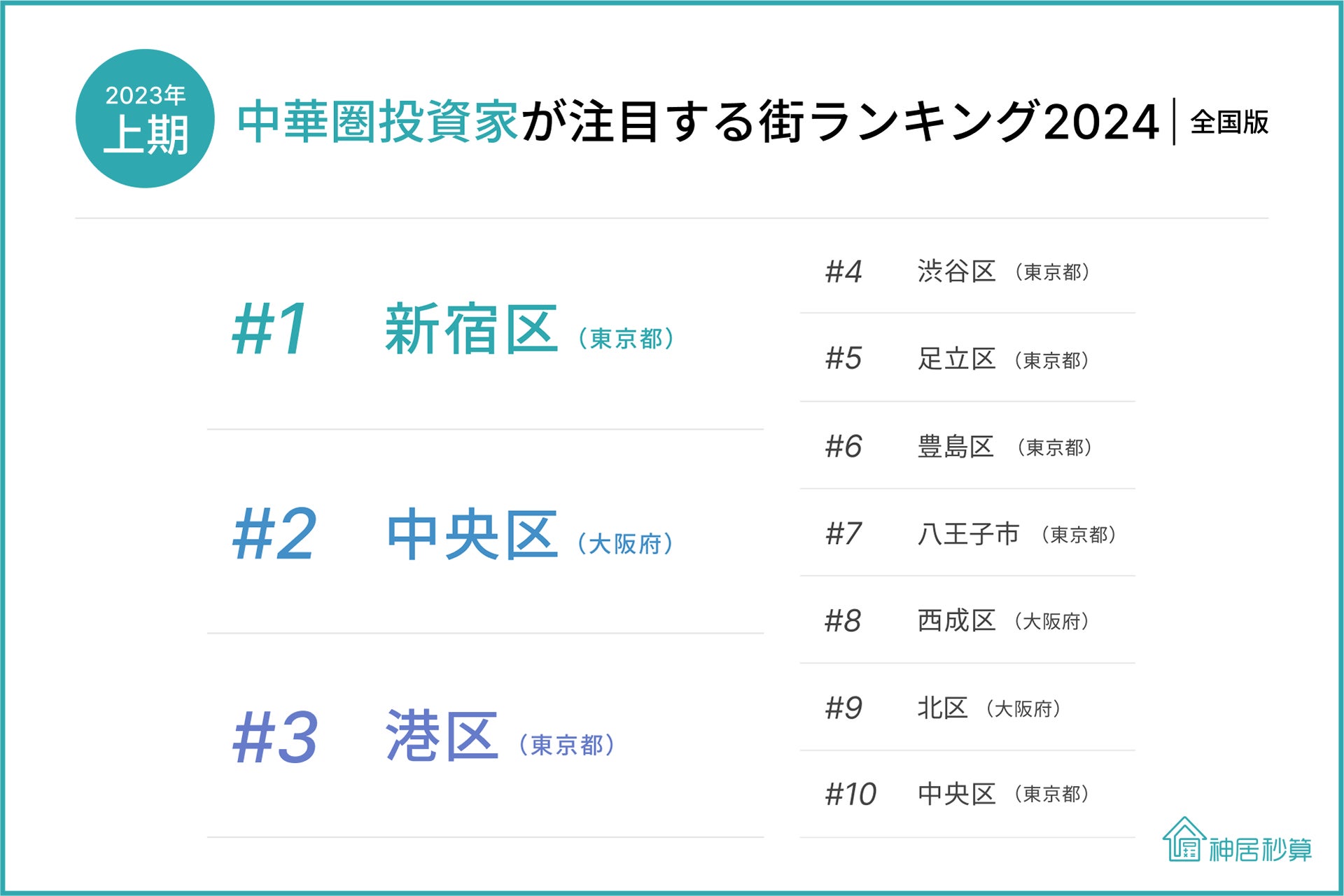 神居秒算、「中華圏投資家が注目する街ランキング(全国版) 2024」発表