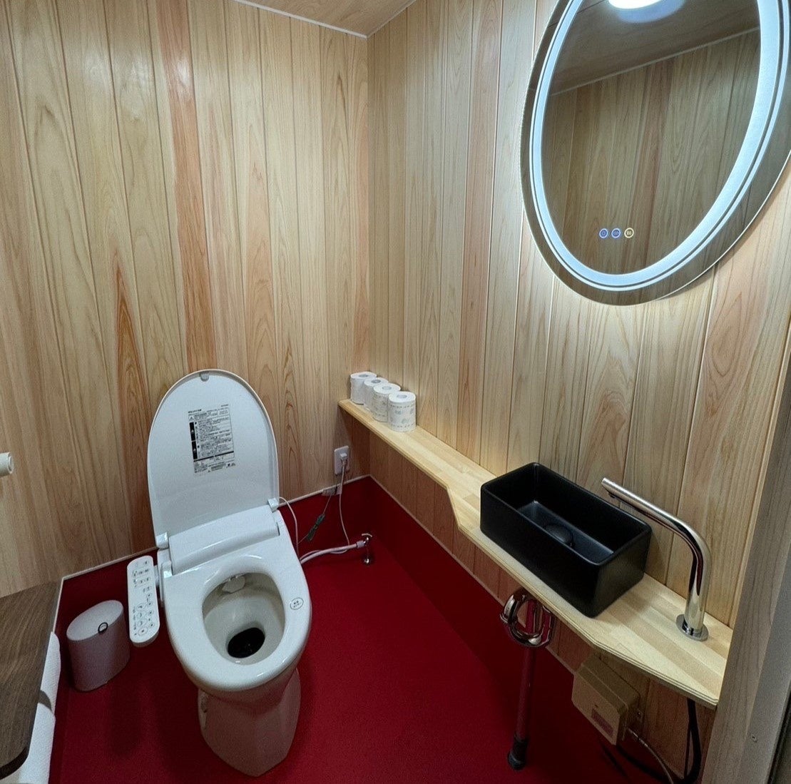真夏の屋外イベントでも臭い抑制に成功の実績、トイレ内には暖房機器も