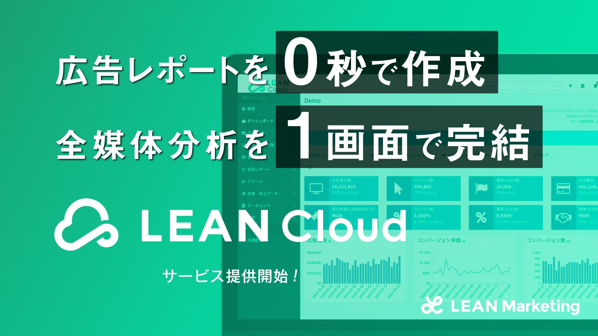 リーンなマーケティング活動を実現し、企業成長を支援する、リーンマーケティング株式会社(本社:東京都渋谷区、代表取締役:佐伯 知亮、以下リーンマーケティング)は、この度インターネット広告の集計・分析をサポートし、デジタルマーケティング担当のリソースを大幅に削減するBIツール『リーンクラウド』の提供を開始いたしました。