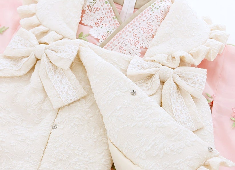 お詣り後のお食事シーンなどでは、被布を脱いでもかわいいワンピーススタイルでお楽しみいただけます。