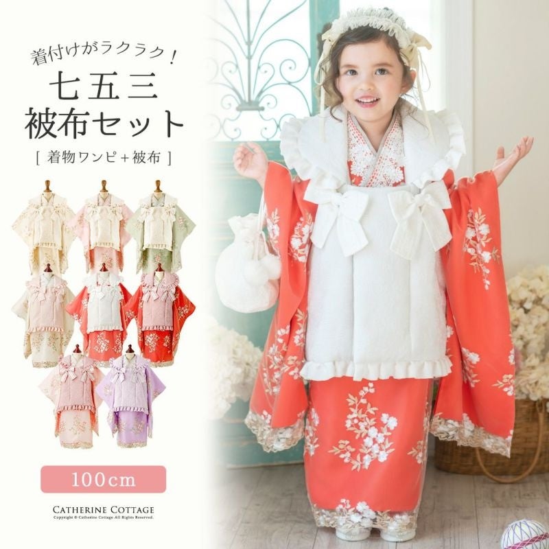【3歳女の子七五三祝いに新常識!】ご自宅で簡単にお支度ができる「着物ワンピース&被布」セット 今年はカラバリも大幅に増えてのラインナップ