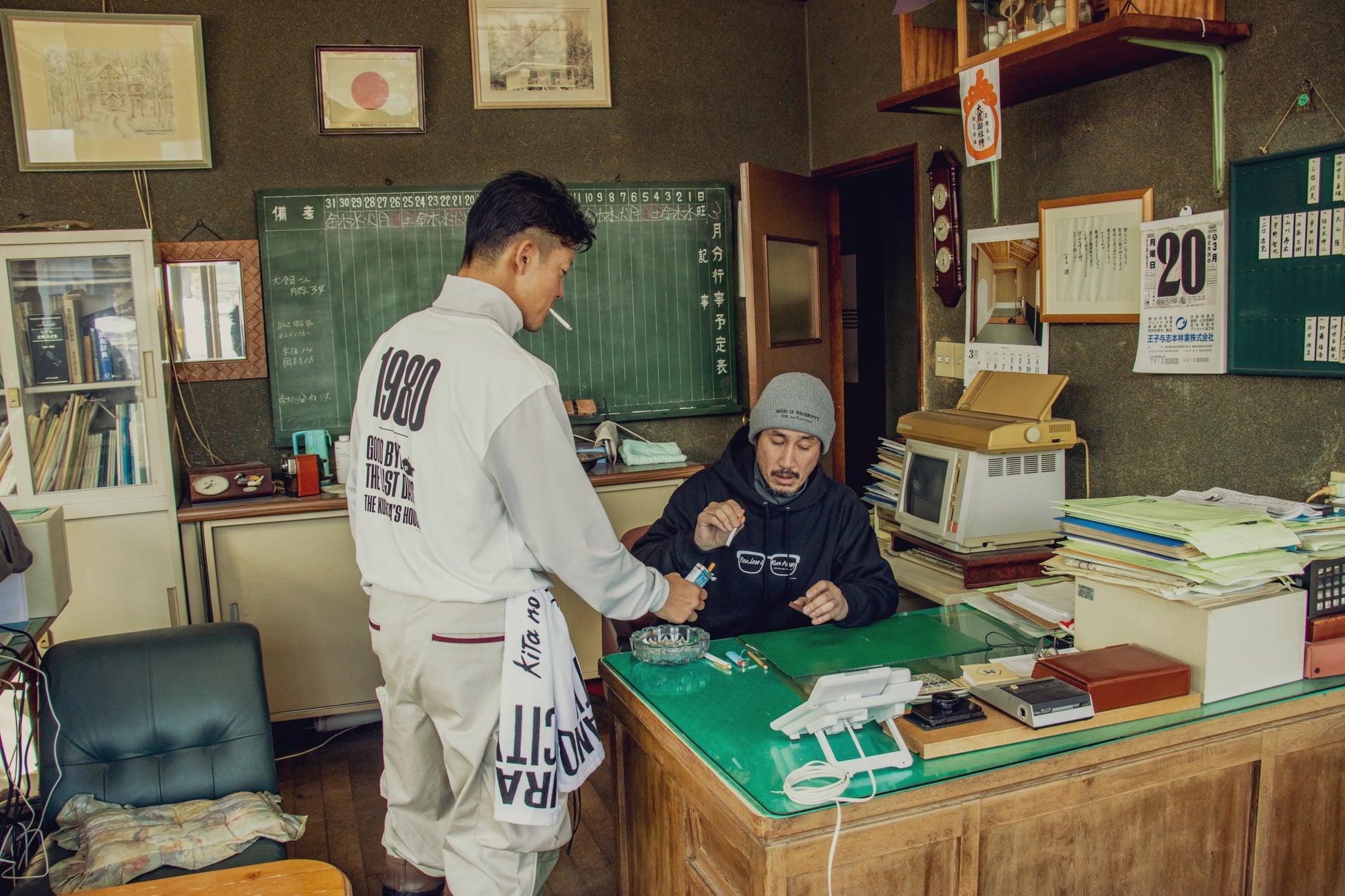アイテムの発表を前に、『北の国から』の撮影で一躍全国的に有名になった土地、北海道の「富良野市」にて、俳優として活躍する渋川清彦氏、駿河太郎氏をモデルとして登場していただき、本コレクションのイメージビジュアルの撮影を行いました。