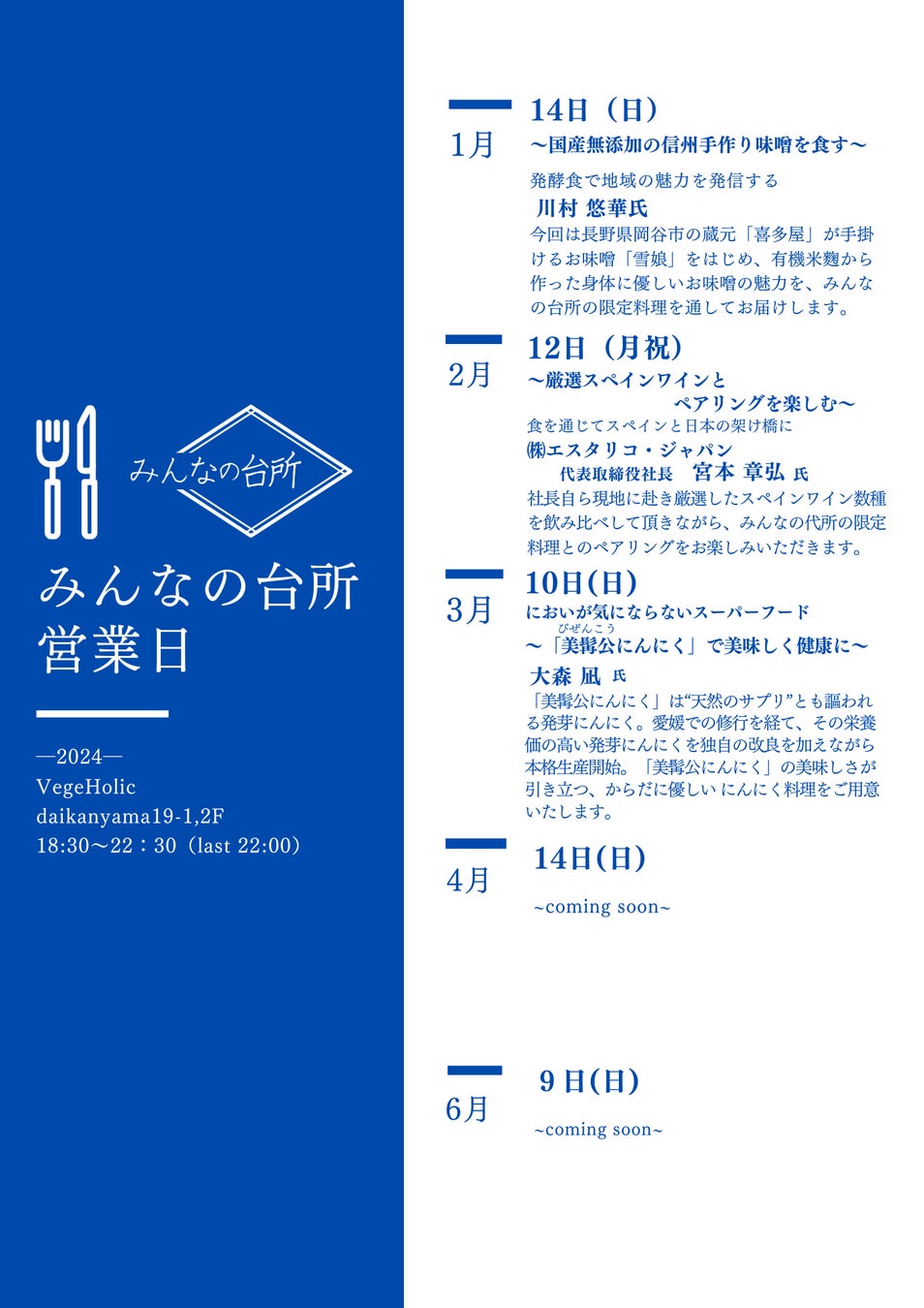 次回は3月10日(日)に「VegeHolic(ベジホリック)」にて開催