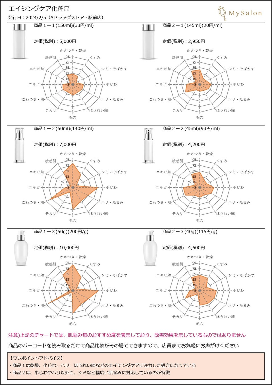 ●My Salonのベースデータである、肌悩み毎のおすすめ度を商品の販売促進のために提供するサービスになります。
