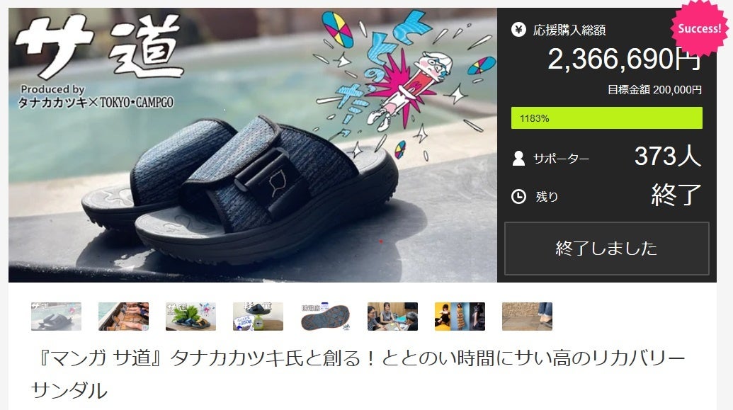 makuake 達成率1183%!『マンガ サ道』原作者タナカカツキ氏プロデュース!アウトドアサウナ、タウンユースにもおすすめのリカバリーサンダルが販売開始!