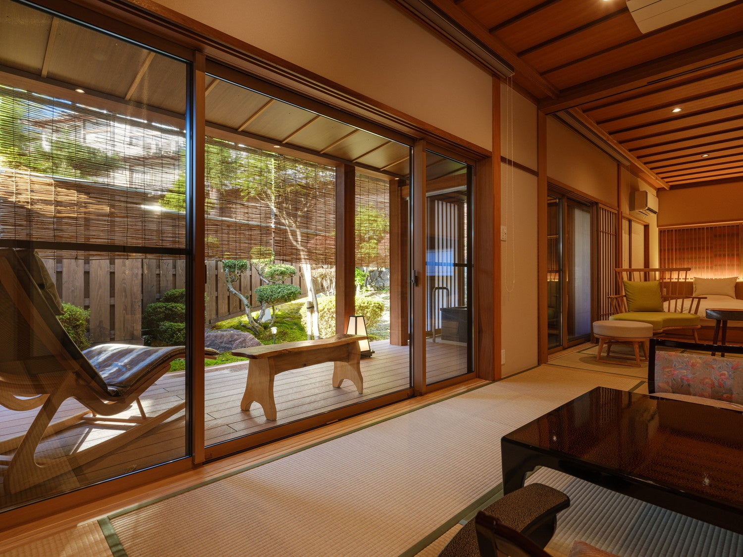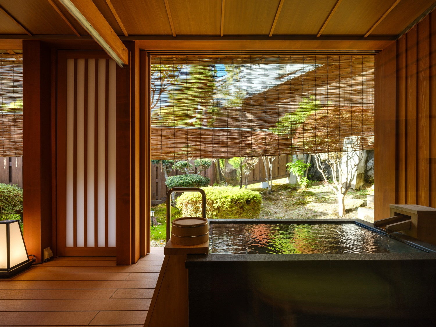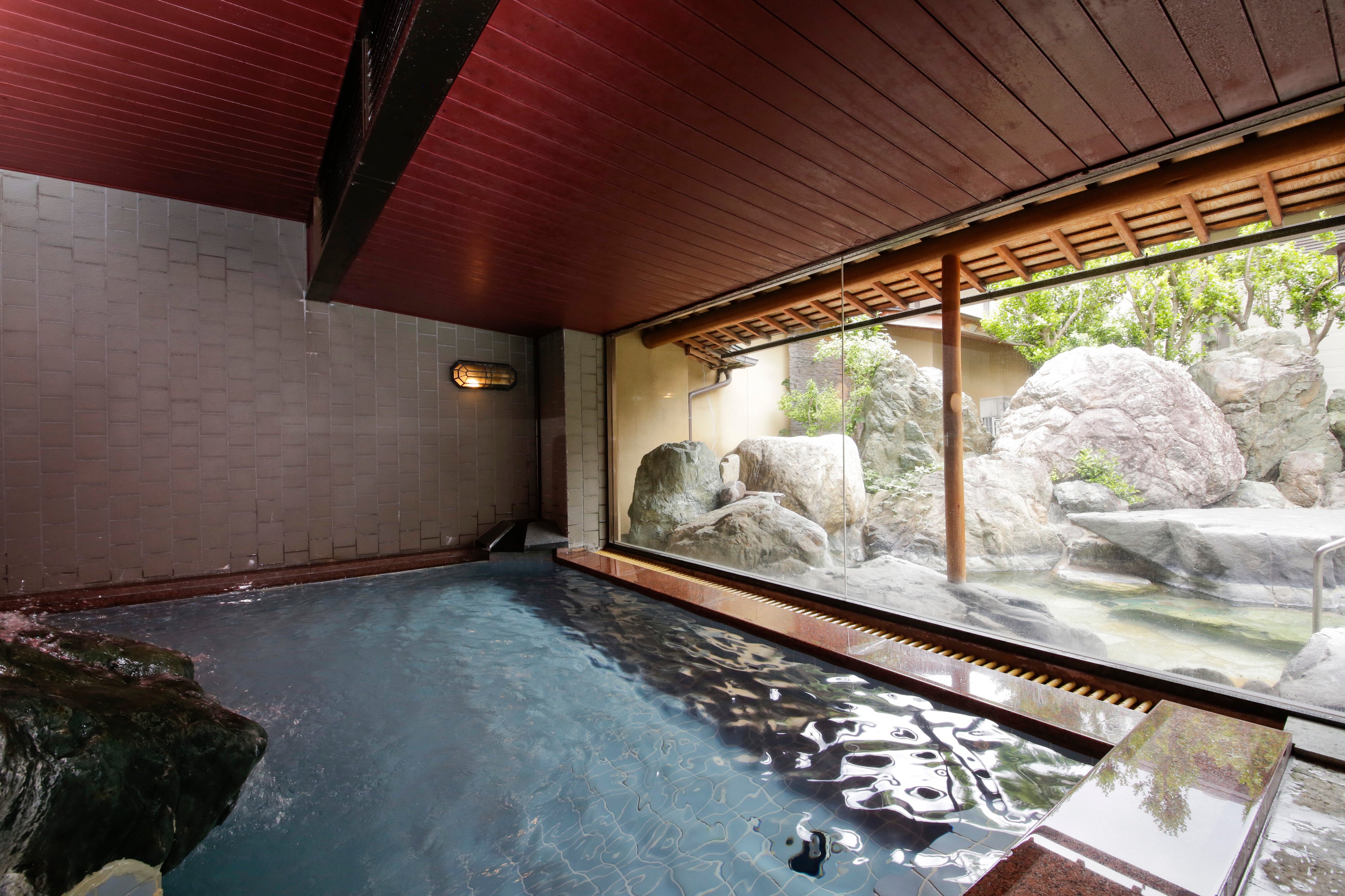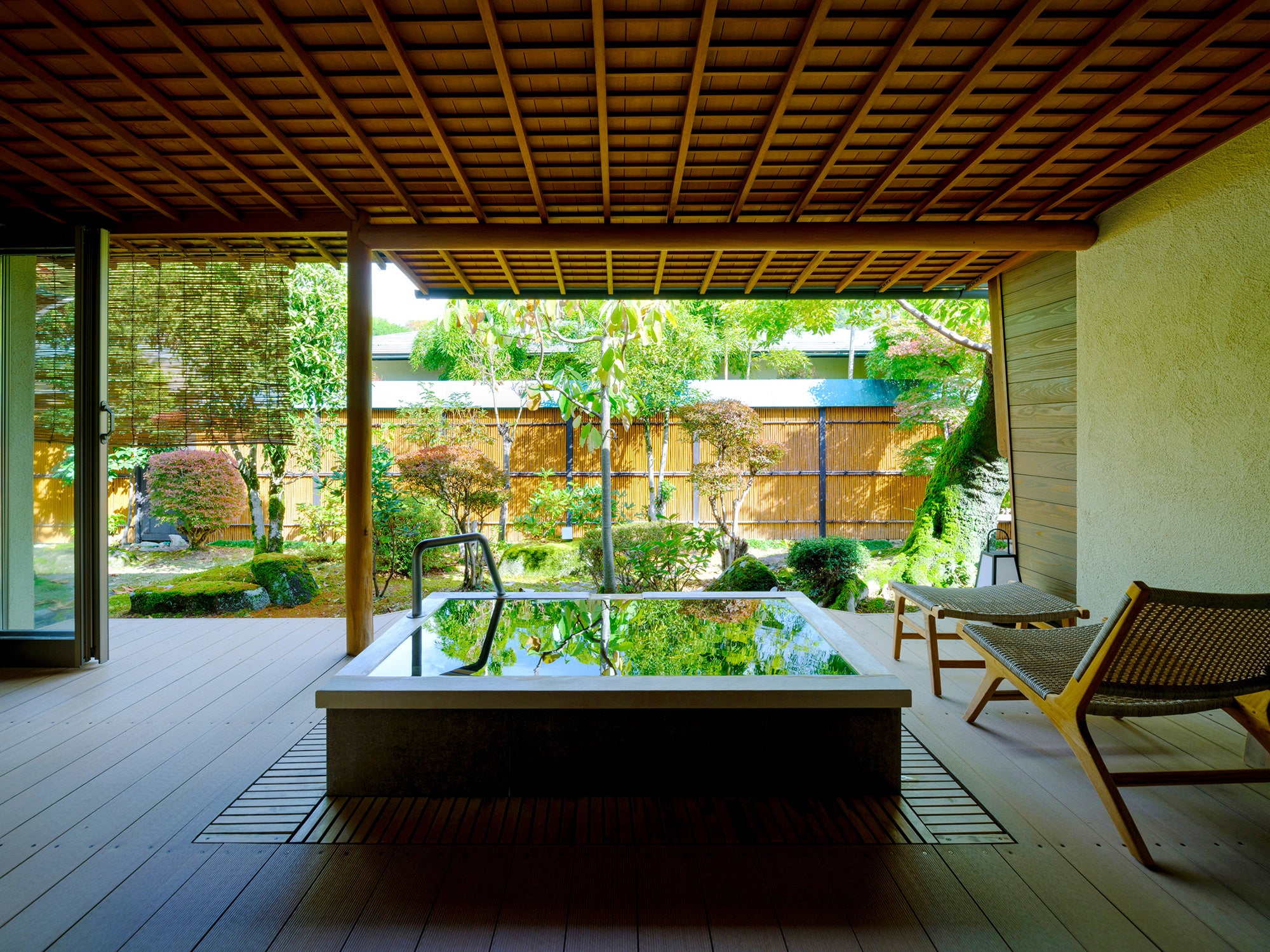 露天風呂付き客室はそれぞれ趣が異なり、広々とした空間です。