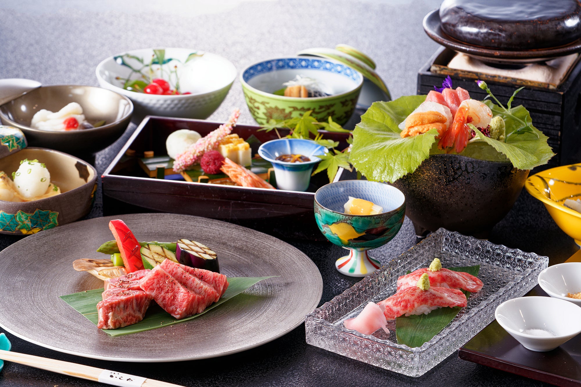信州の山里の幸をはじめ、その時々の旬な食材を取り入れた本格会席料理。