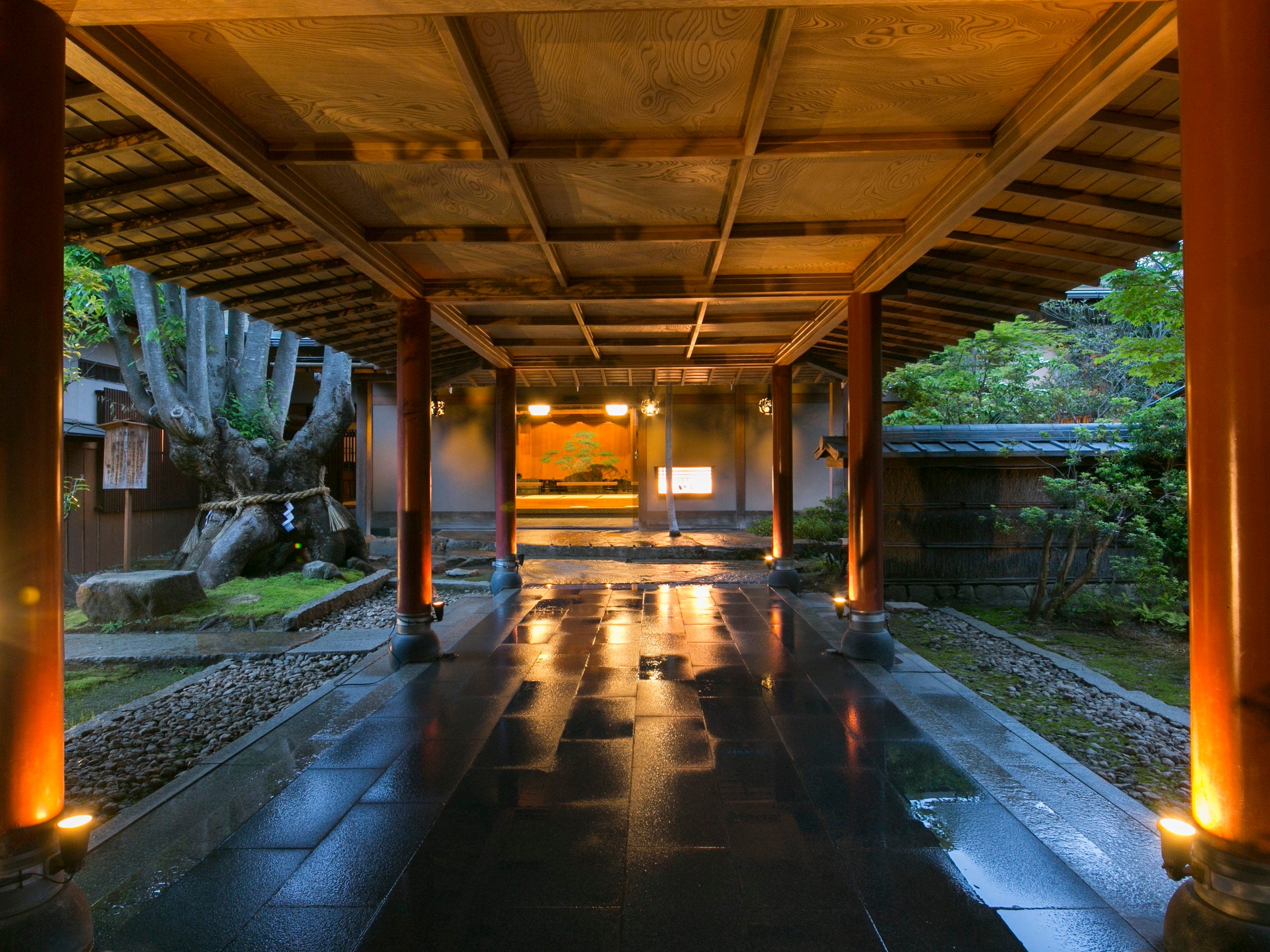 約3000坪の敷地に数寄屋建築平屋造り、全17室の純和風旅館。