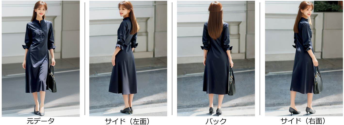 元データ(正面画像1枚)から、背面、側面の画像を生成します。
