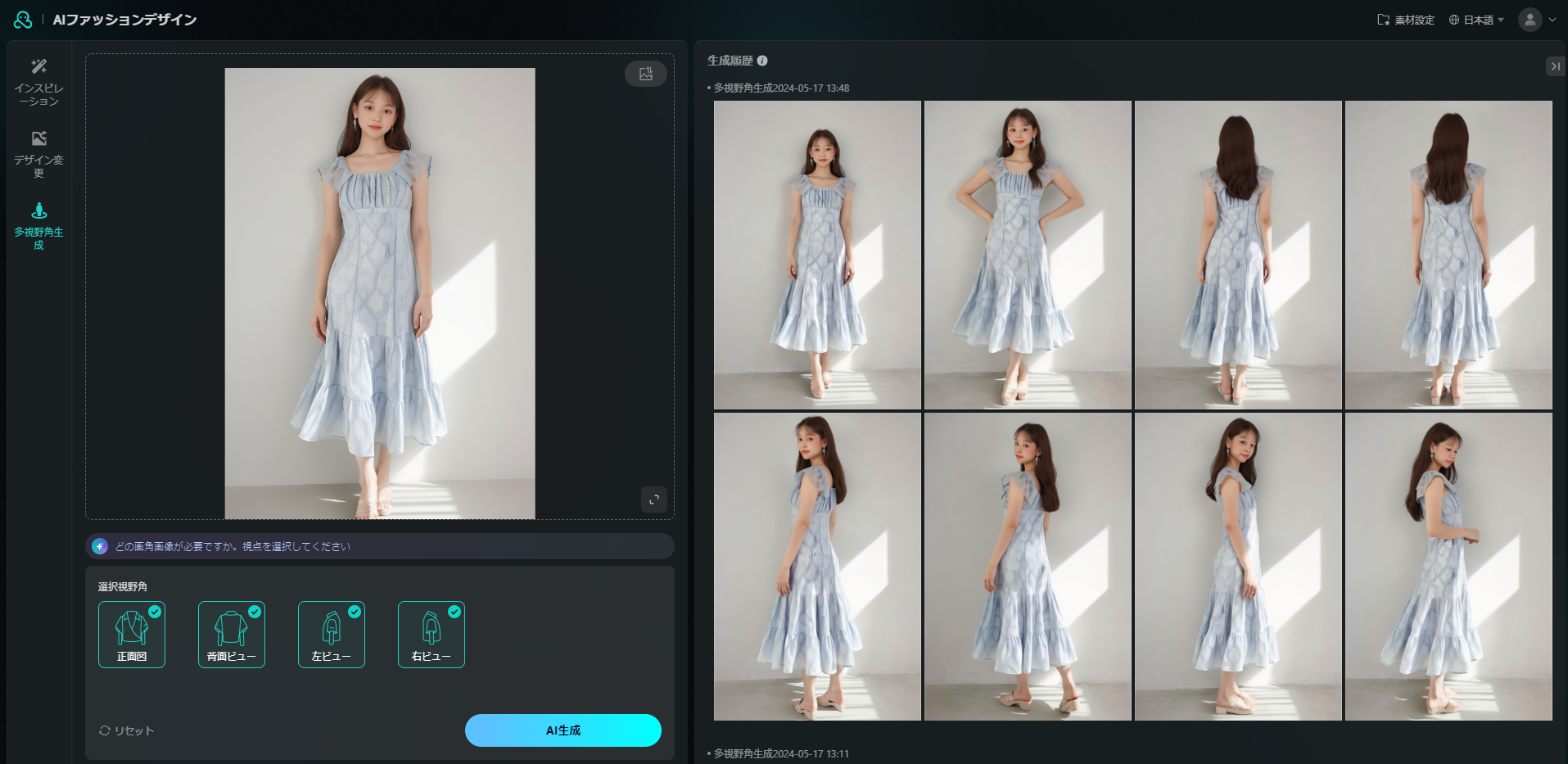 ユーザー企業様より“企画書、商品サンプル依頼において、背面・側面の画像が欲しい”との声を多くいただき、「マルチアングル生成」を実装いたしました。