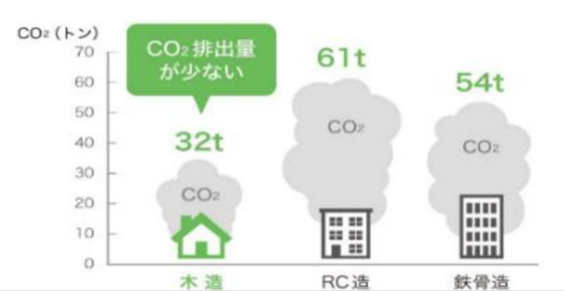 「木」は鉄やコンクリートに比べて、製造・加工・運搬時に必要とされるエネルギーが少ないため、木造建築は建設時のCO₂排出量を大幅に削減します。また、木造建築は長期間炭素を大気に戻さず建物内に固定化(貯蔵)します。本物件での木材の総利用量は 308.1m³となり、炭素貯蔵量(CO₂換算)は237.2t₋CO₂これはスギの木換算で 470本に相当する量を貯蔵していることになります。循環型資源である「木」をより多く建物に活用することで、脱炭素社会の実現に寄与します。