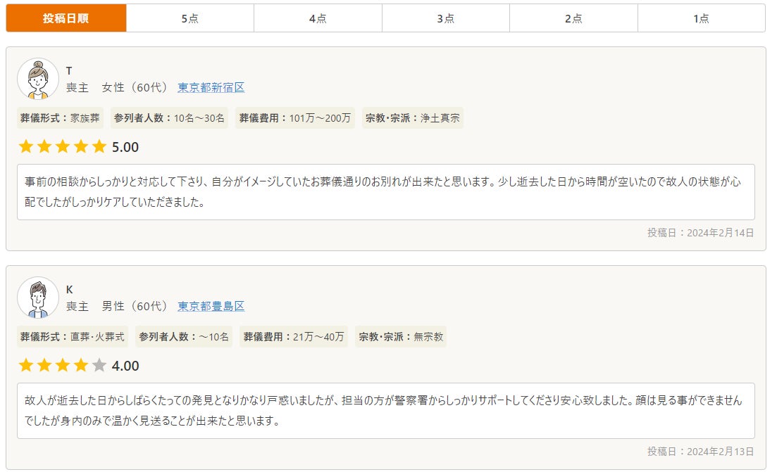 「葬儀の口コミ」投稿者の詳細情報を表示。自分に合った葬儀社選びを簡単に|新機能追加