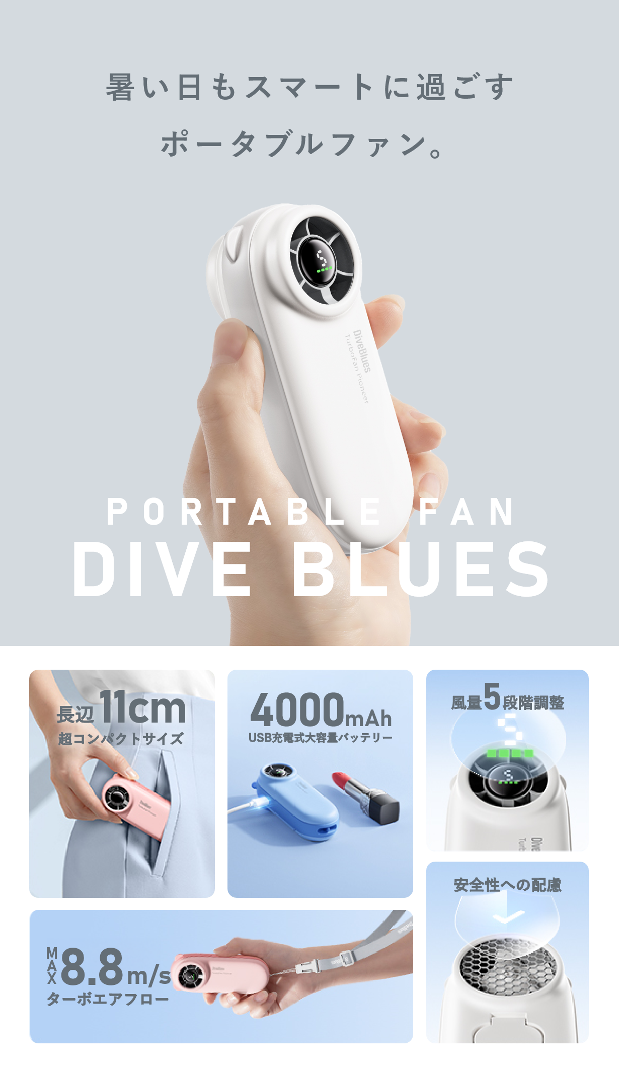 海外累計販売数30万個突破中。軽すぎて老若男女問わず使える超小型爆風ハンディファン